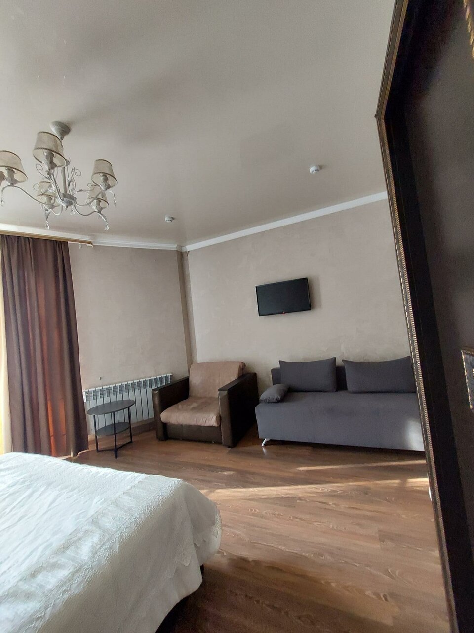 Желания останавливаться больше нет. Номер был на 4, диван еле разложили, обои оторваны, запах сырости. Очень тусклое освещение.