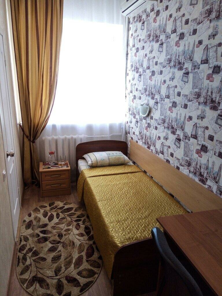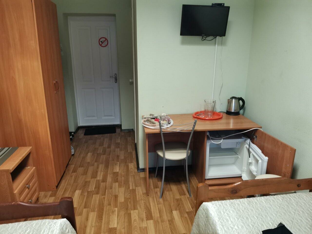 Очень понравилась гостиница. Останавливался в одноместном номере на 3 этаже, окна во двор, в направлении магазина ‘Метро’. ( Кто-то писал про кинологическую службу и лай собак, это на противоположной стороне здания и я ничего такого не слышал). Номер — душ, туалет, кондиционер, холодильник, одноразовые тапочки, шампунь, Wi-fi… Удивило наличие смарт-телевизора, т е. кроме эфирных каналов можно и в Youtube заглянуть. На этаже — кулер и мини-библиотека для всех желающих (см. Фото). Гостиница расположена на 3 и 4 этажах, есть лифт. На 2 этаже столовая на 4 столика, готовят оч вкусно (борщ, котлеты на 5 звёзд), ну а если не успели до 18.00, то на 1 этаже есть пара вендинговых аппаратов ( см. Фото). Администраторы вежливые, даже в 5.30 утра, когда уезжал 🙂 Обед — 290320 руб., номер — 1500.