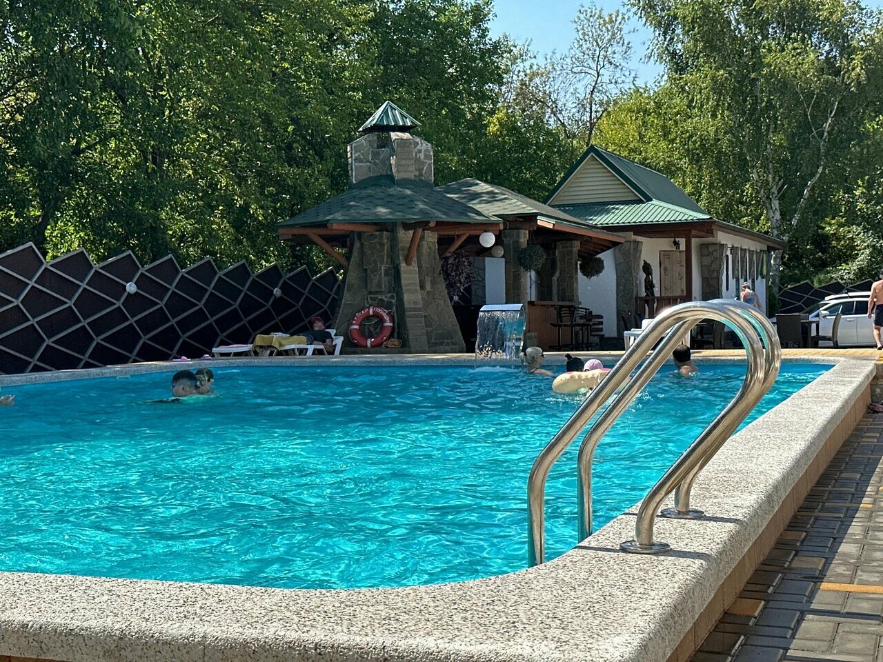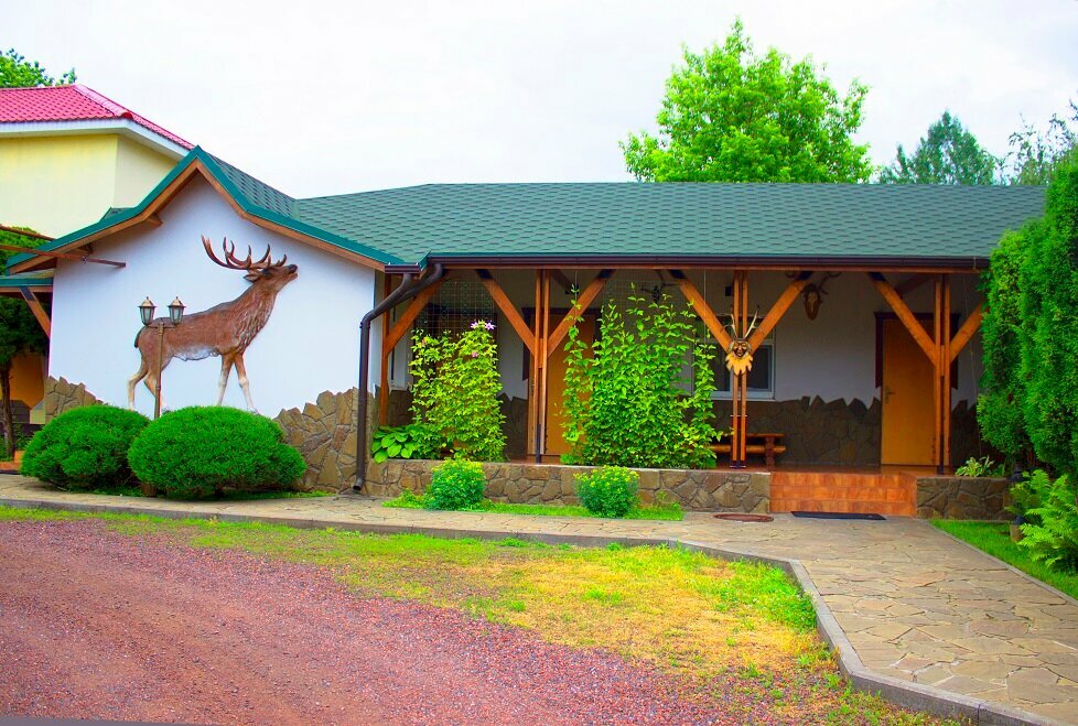 Отличное место на Левом берегу. Удобное расположение для промежуточное ночёвки. Хороший ресторан, брали шашлык, салат с говядиной. Достаточно быстрая подача, высокий уровень обслуживания. Детям очень понравился охотничий интерьер ресторана. Номер — отдельная тематика. Нам достался люкс: высокие потолки, чисто, много воздуха и пространства, очень много места, есть чайник, чай, сахар. Во дворе оборудовано 2 купальный зоны, при входе стол, стульчики для отдыха на террасе.