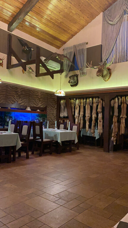 Отличное красивое место. Останавливаемся там по дороге на юг. Красивый стилизованный ресторан с настоящими шкурами и чучелами животных. Для тех кому нравится. Ценник дороговат, но не чересчур. Приемлемо.