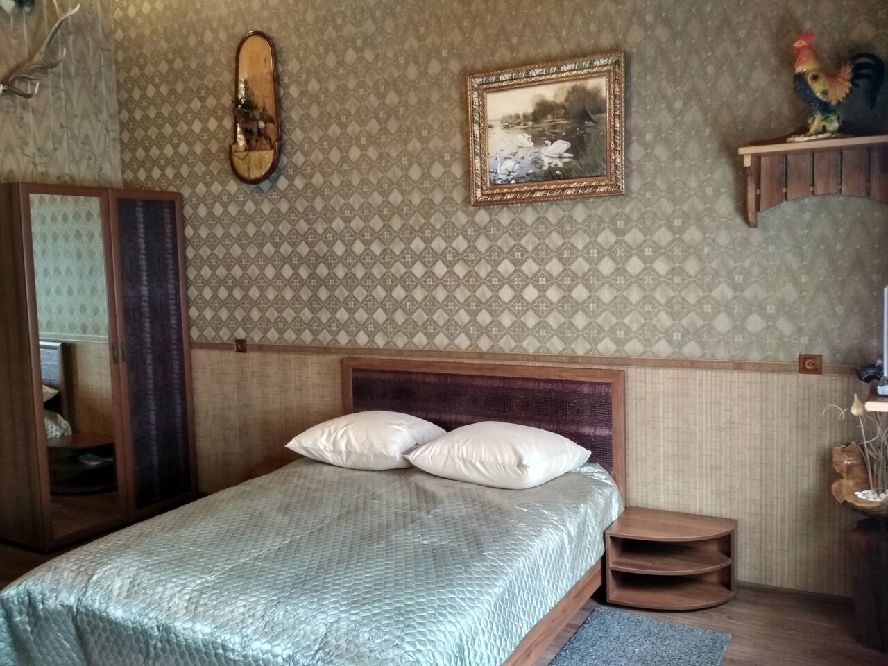 Отличное место для ночевки, большие номера, все чистенько, интерьер специфический, но в тематике всего комплекса))) , хорошая шумоизоляция и расположение (не первая линия проезжей части); ухоженная территория, скамеечки, цветочки, утром проснулись от ароматов лилий. Тут же вкусный ресторан (писала в другом отзыве), жаль нет завтраков, но поели вчерашние люляшки с удовольствием, (дети не осилили сытный ужин)))