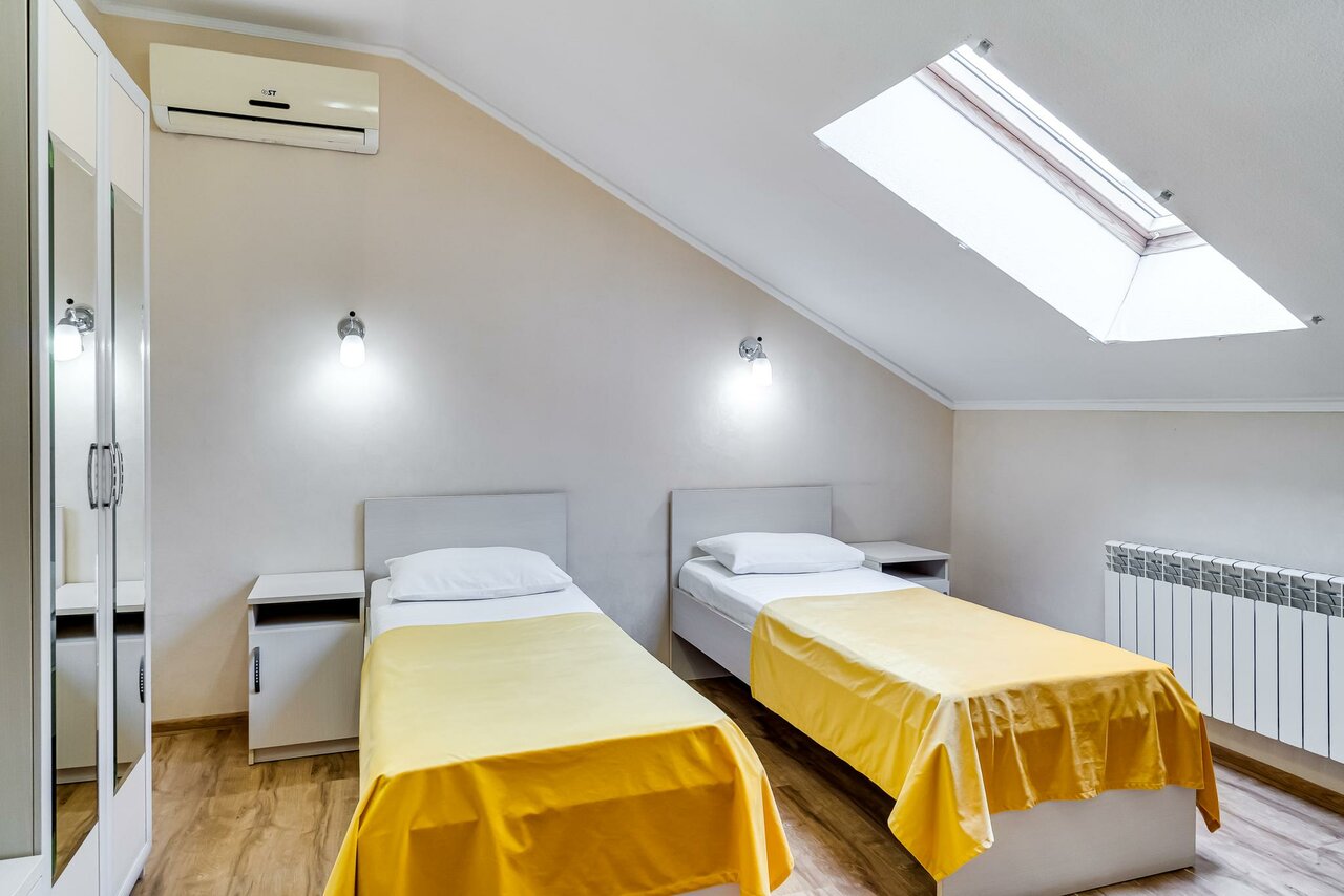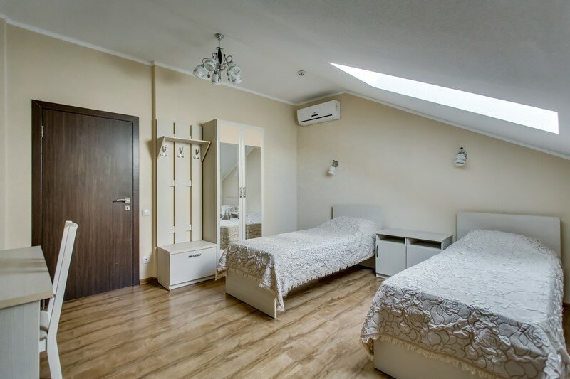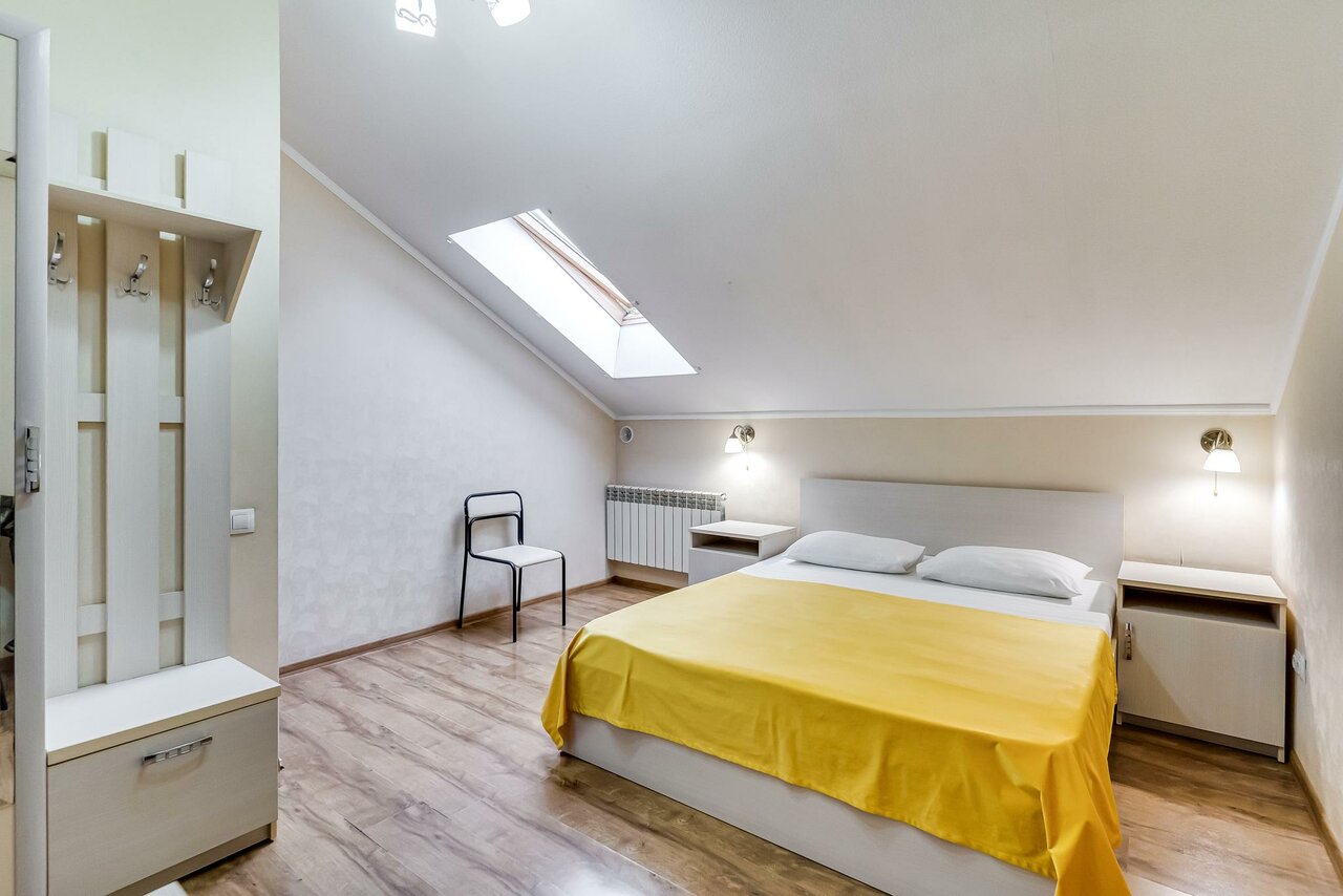 Что понравилось: Наличие кондиционера, чистая постель, наличие душа, туалета, умывальника Наличие воды, чайника, кофе при желании. Что не понравилось: Окно мансардное без шторки, утром с рассвета солнце слепит комнату Насекомые Двери, помещения требуют ремонта. Питание (завтрак) за 350 руб для двух человек содержит слойку с джемом (супер сладкая), яйцо вареное 1 шт, два бутерброда с колбасой, каша овсяная пакетик магнитовский, сливки 1шт, конфета птичье молоко. В целом, за такие деньги сойдёт.