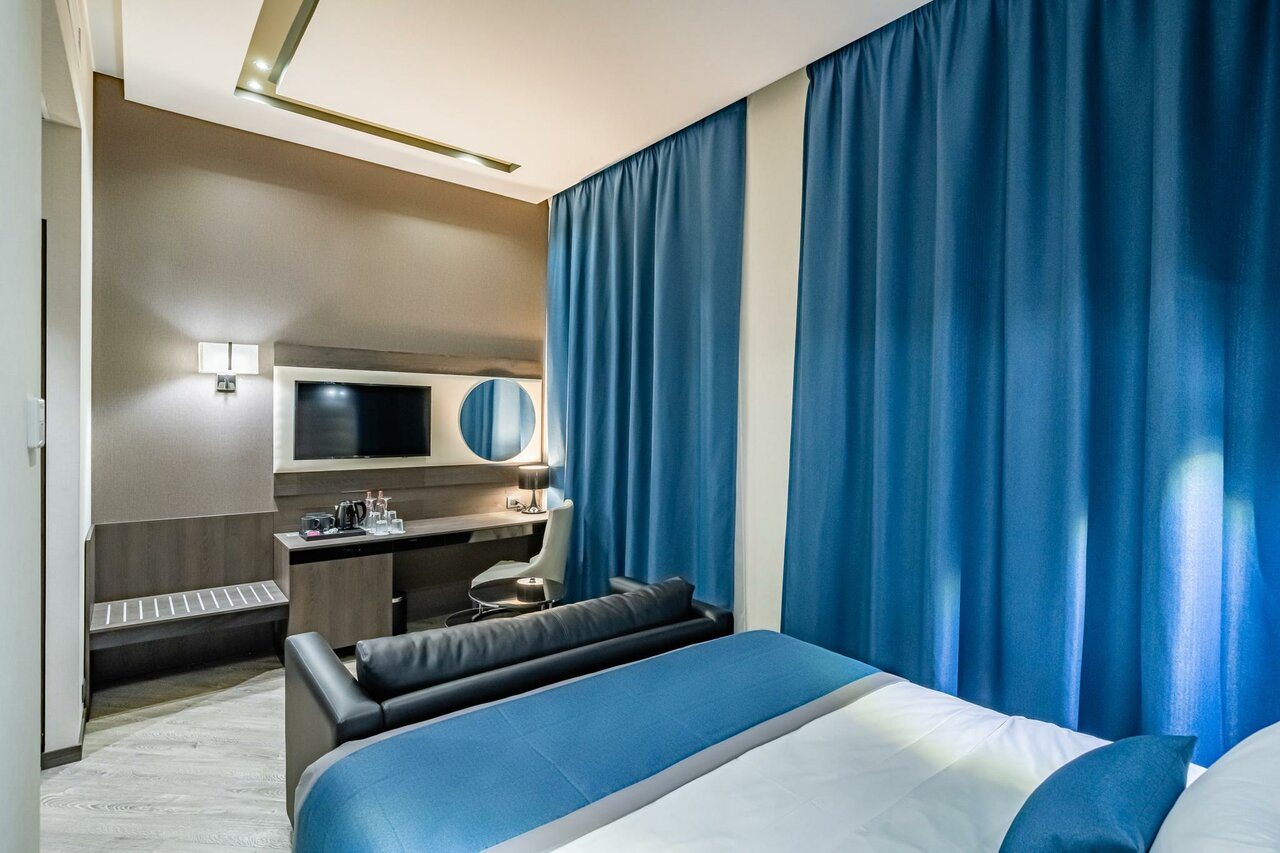 Удобства: — Номера с кондиционером, звукоизоляцией, Wi-Fi, мини-баром, ТВ, санузлом. — Бесплатная парковка, платный трансфер (аэропорт/вокзал). — Ресторан, кафе, бар, бизнес-центр, конференц-зал. — Услуги: химчистка, прачечная, носильщик, консьерж. — Доступны гипоаллергенные номера, детские кроватки, пандусы.