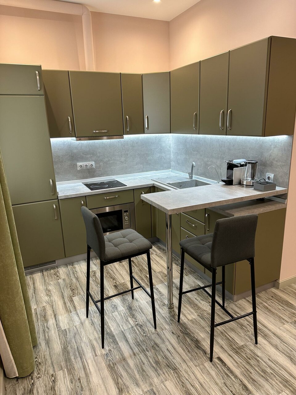 Отличные апартаменты , уютный двор ,есть своя парковка . Понравился номер , все качественно , дизайн 5+ . Очень хороший вариант за адекватную цену .