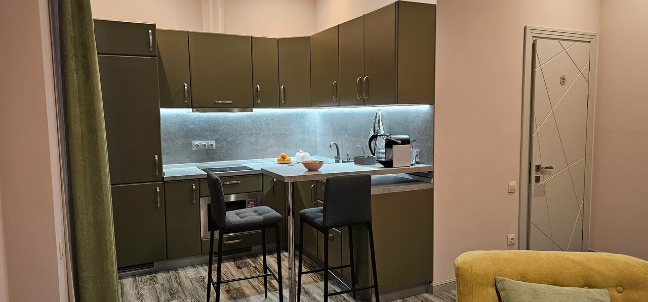 Отличные апартаменты с кухней, с новым ремонтом. Очень красивая дизайнерская отделка. На кухне есть все необходимое. Великолепное расположение: рядом Пушкинская — прогуляться, огромное количество кафе и ресторанов. Большой плюс закрытый паркинг!