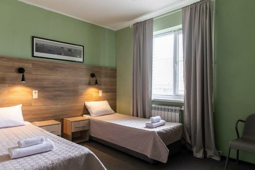 Номер с двумя односпальными кроватями, имеющий все необходимые условия для проживания.