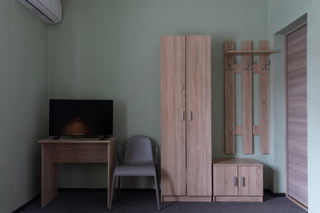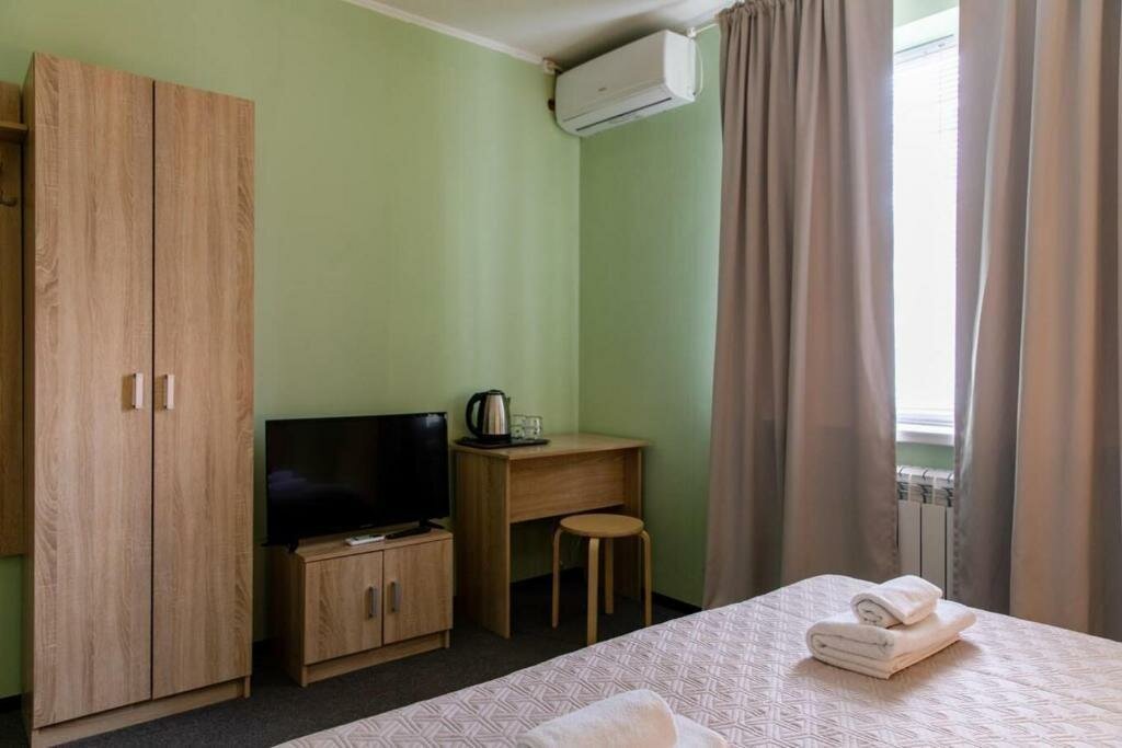 Удобства: ✔ Номера от 2700 ₽/ночь с кондиционером, Wi-Fi, телевизором, холодильником, чайником и санузлом. ✔ Бесплатная парковка, бизнес-центр, конференц-зал, кафе и бар. ✔ Возможно проживание с животными (платно), есть камера хранения и прачечная.