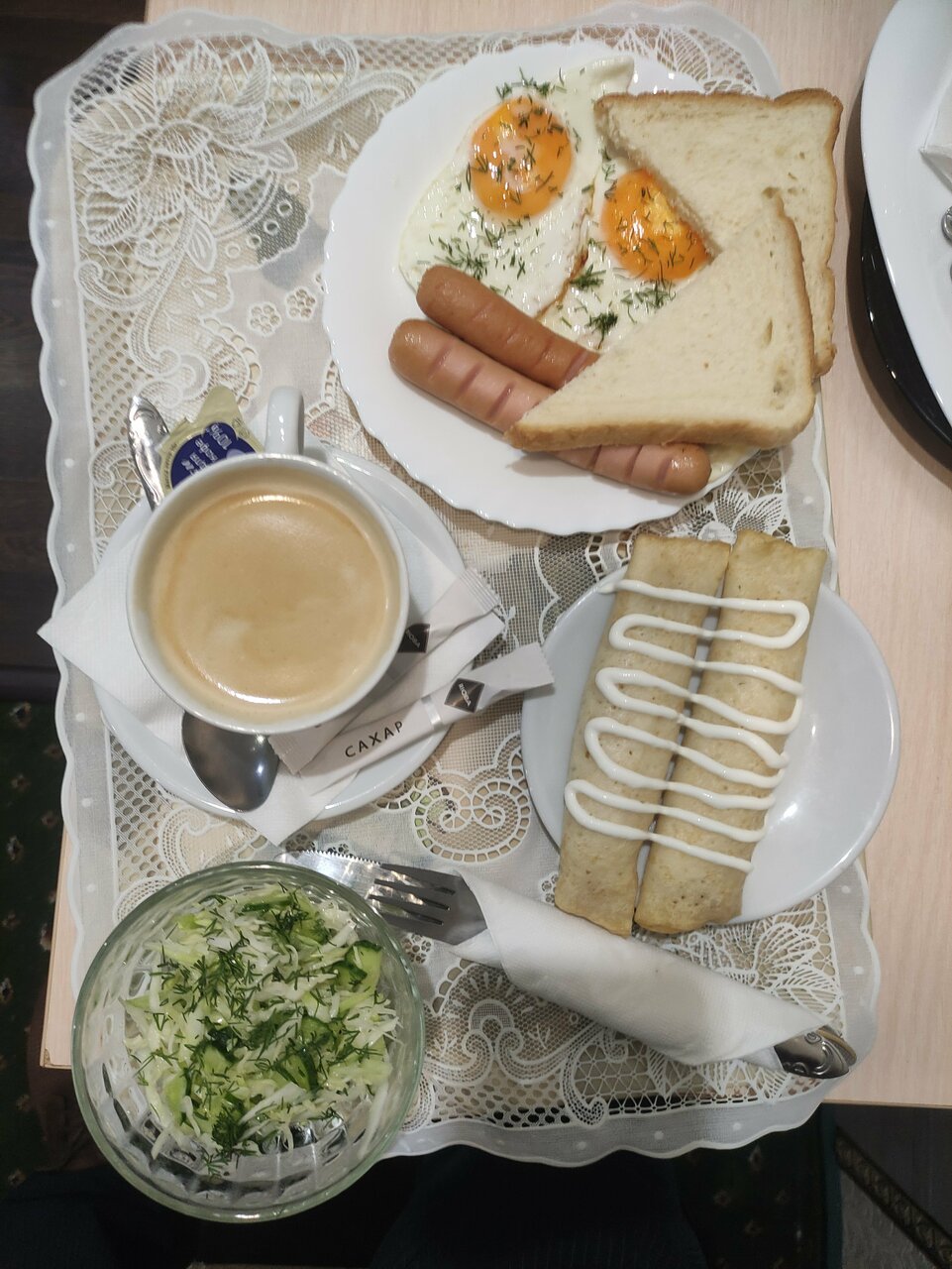 Неплохой мини отель, останавливались дважды. Жили в семейном номере, состоящем из двух комнат. Все чисто, аккуратно, просторно. Завтрак очень сытный ( яичница с сосисками, овощной салатик и 2 сырника, чай/кофе), все вкусно.
