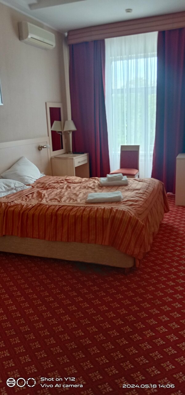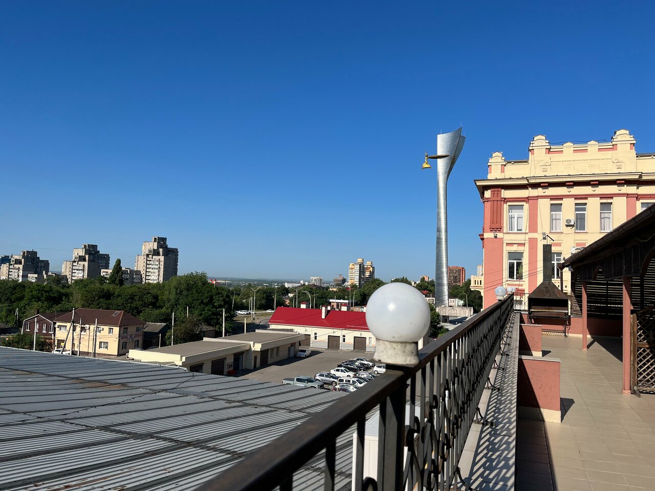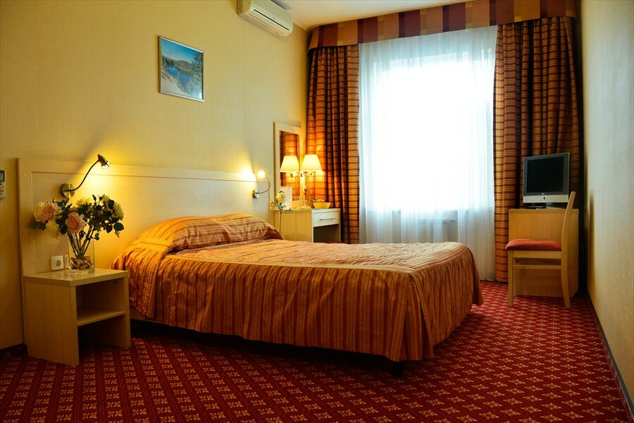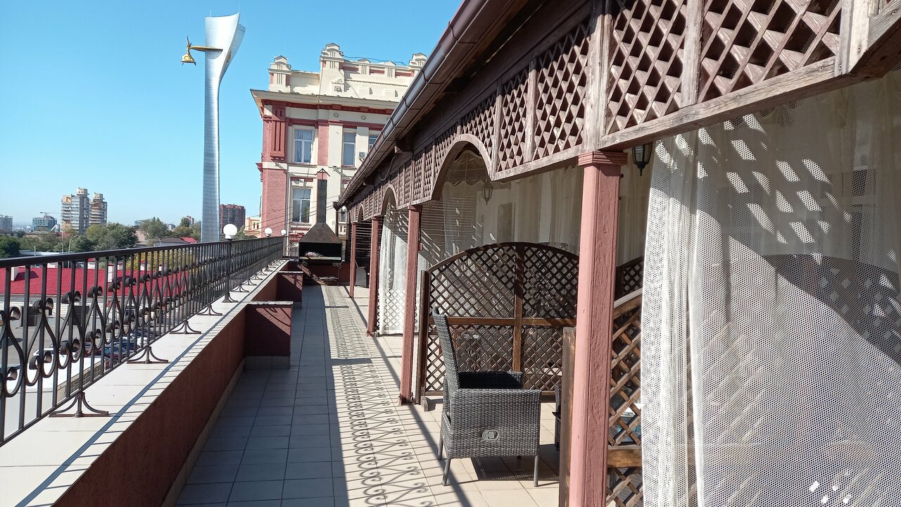 Хорошая чистая гостиница, хоть и не новый ремонт. Удобное расположение — рядом парк с колесом обозрения и здание театра Драмы. Есть парковка перед входом в гостиницу. У нас был номер с отдельным выходом на террасу.