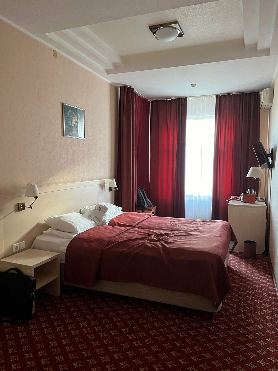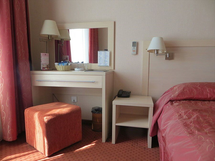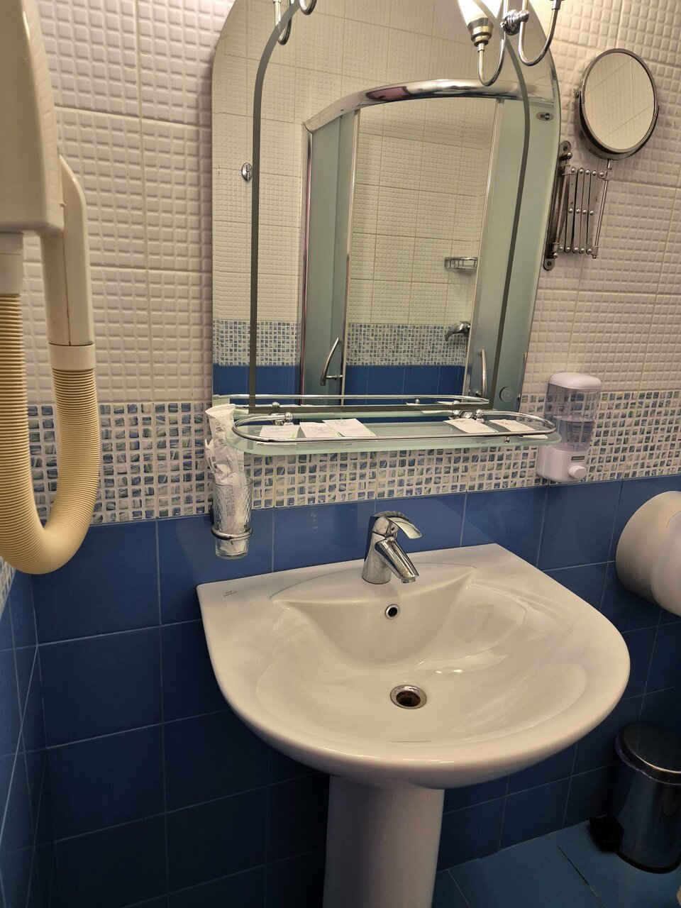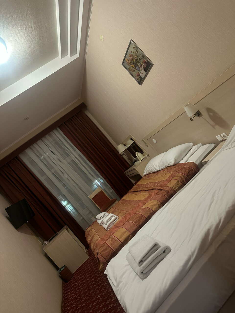 Расположение — неоспоримый плюс. Больше выделить нечего. Первое впечатление — в номерах ремонт морально устарел, стоит дешевая мебель, которую уже не мешало поменять, при заселении не было части туалетных принадлежностей, тапочек, нужно просить, чтобы положили, питьевая вода отсутствует, стаканы и то из разных наборов, все какое-то обшарпанное, что вызывает брезгливость. Потом выяснилось, что у нас течет душевая кабина, а в раковине даже руки помыть невозможно, так как вода течет тоненькой струйкой. Кровать — это отдельная история. Вернее кроватИ, которые сдвинуты между собой, с двумя разными матрасами, которые продавлены к центру настолько, что ты постоянно скатываешься к центру прямо в дыру между матрасами. Два геля для душа и две шампуньки- это видимо на все дни вашего пребывания, потому что нам никто на следующий день так больше ничего и не принес. Учитывая стоимость, может конечно отзыв и предвзятый, но больше там ночевать мне не хочется.