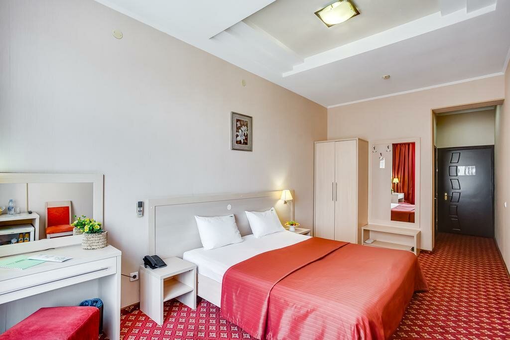 Номер 2-х местный площадью 17 м2.В номере двуспальная кровать или 2 односпальные кровати, 2 прикроватные тумбочки, письменный стол, 2 стула, шкаф для одежды, душевая кабина, фен, средства личной гигиены (мыло, гель) , полотенца и электро-чайник.
