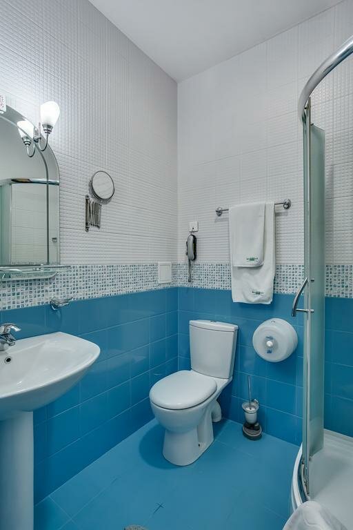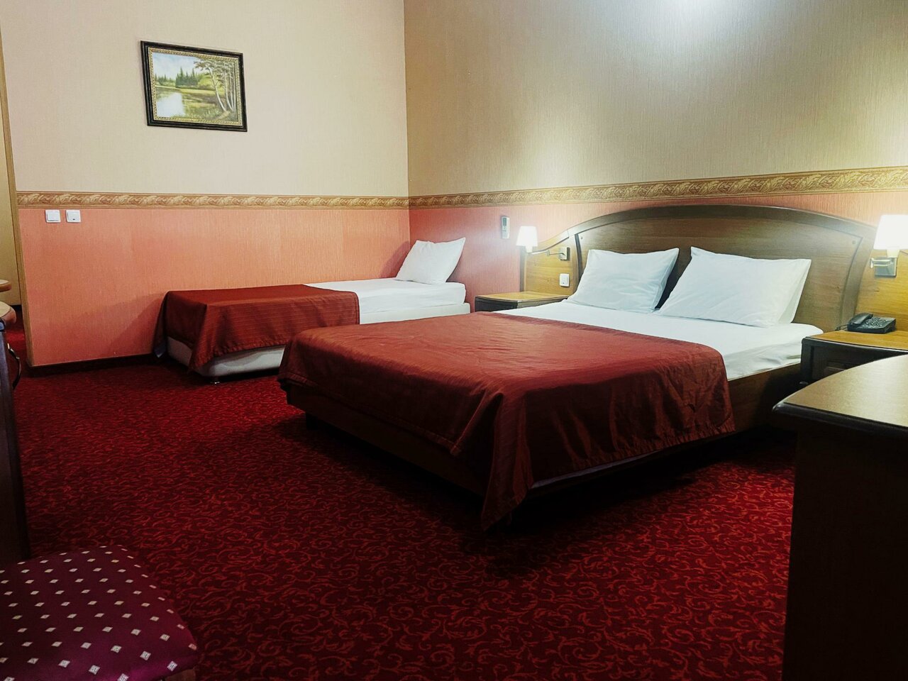 Душ и сан/узел в номере, две раздельные кровати, жк-тв, полотенца, стол, стулья, зеркало. Площадь номера 12 м².Номер для 2 гостей.