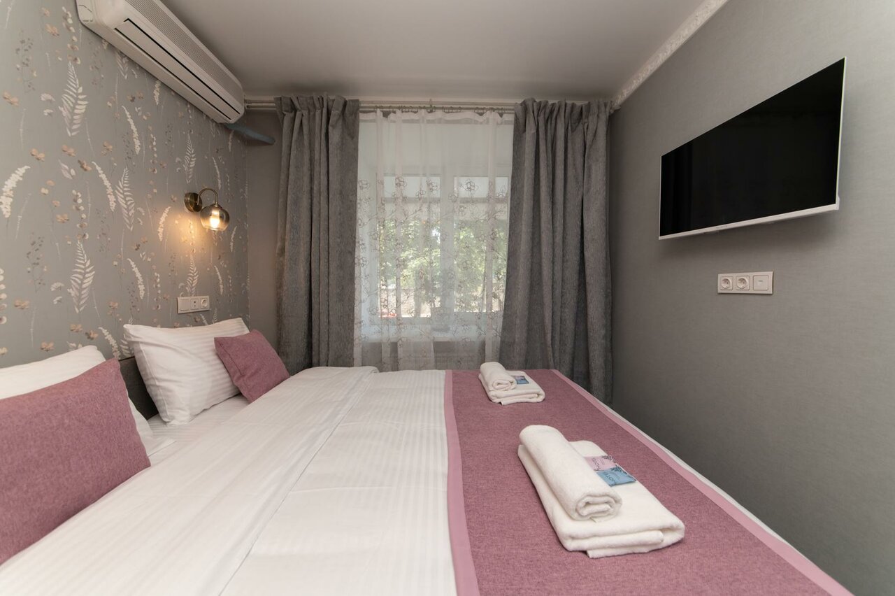 Хороший вариант переночевать для пересадки на поезд в Ростове-на-Дону. Отель в жилом доме. Окна номера выходили в обычный жилой дворик. Проблем не было, но оценку снижаю за запах в коридоре и номерах. Не прокурено, но запах — возможно, недостаточная вентиляция.