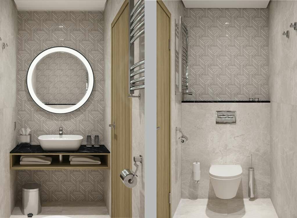 - Возможность попасть в торговый центр прямо из отеля.; Современный и продуманный интерьер.; Удобное расположение рядом с торговым центром, кинотеатром и ресторанами.; Красивый санузел.; Красивый вид из окна.