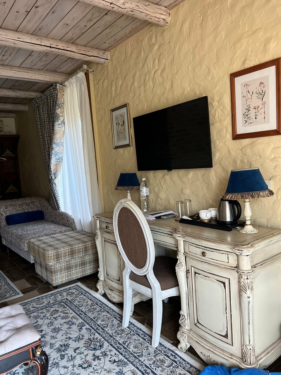 Отличный отель, оформлен со вкусом. Номера большие. За дополнительную плату чистый бассейн. Вкусные завтраки. Отдельно заказывали ужин, очень понравился. Спасибо хозяевам за комфорт!