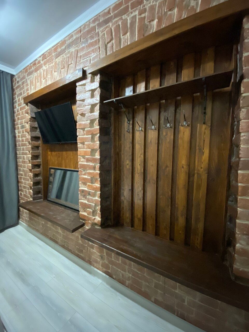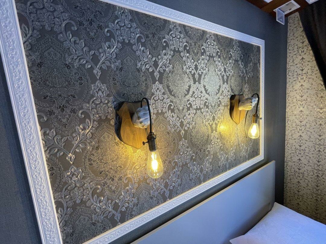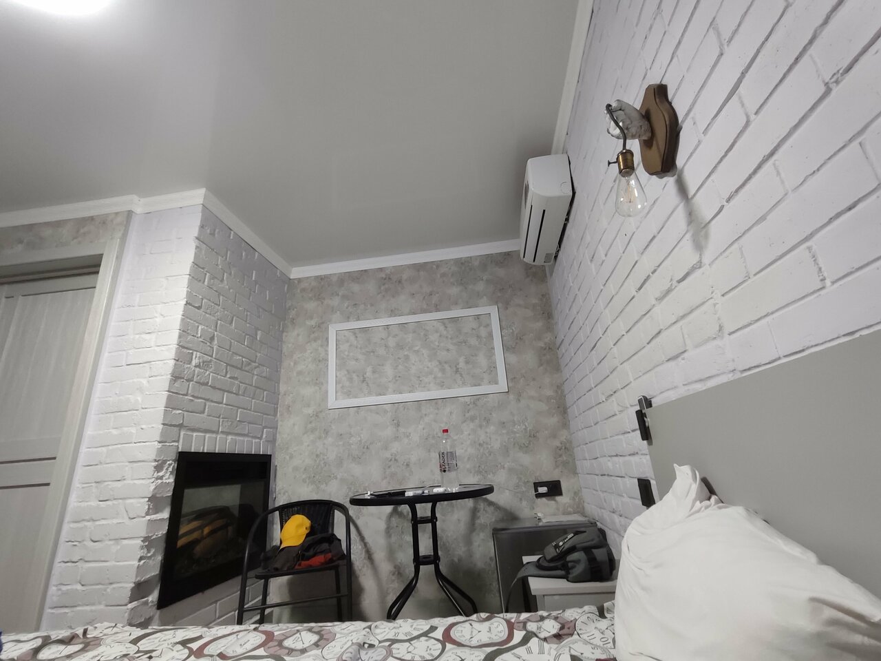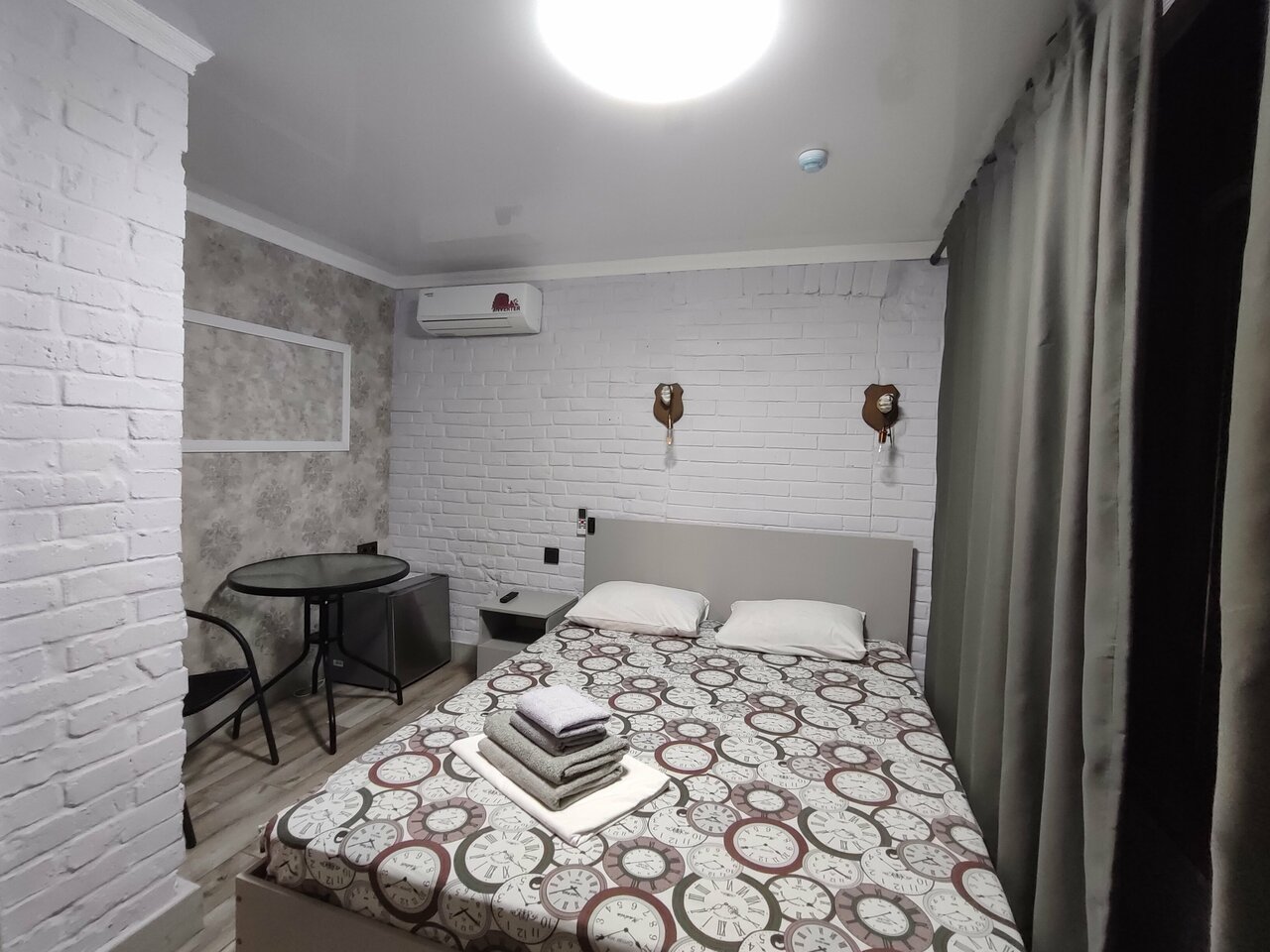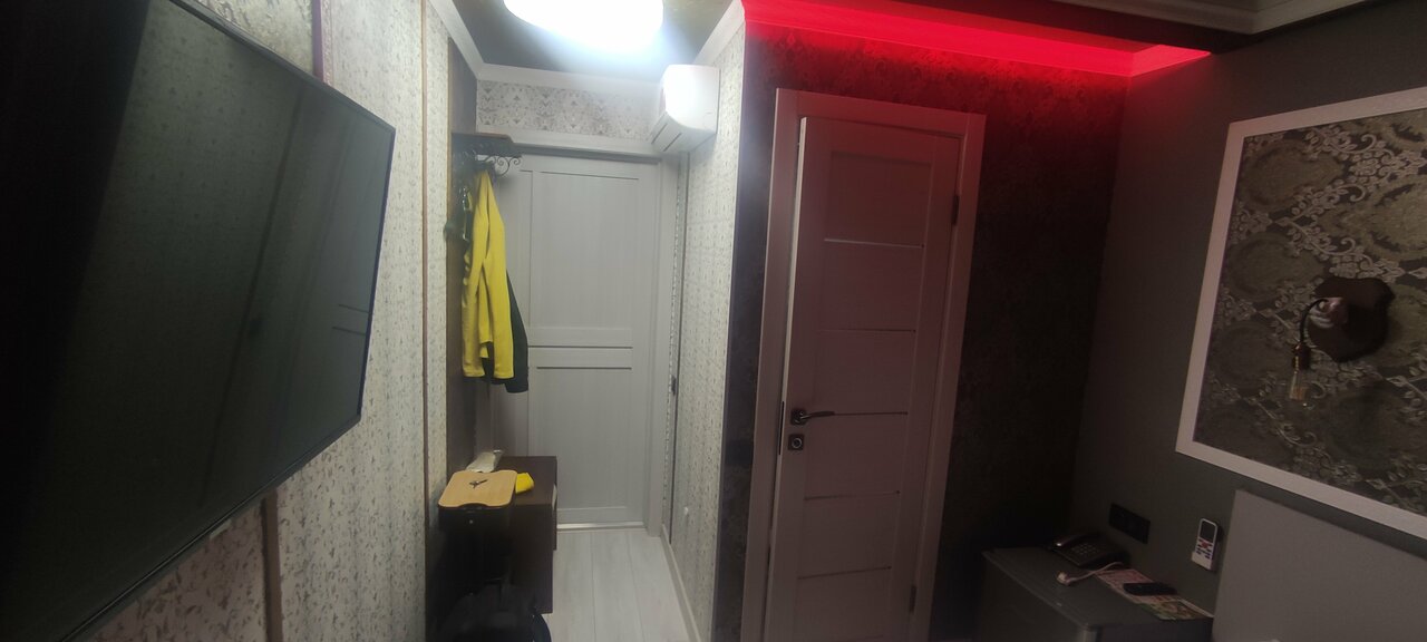 Ремонт хороший, видно, что сделано красиво, стильно и с душой. Но, к сожалению, даже самые красивые обои не заменят элементарных необходимых вещей. В комнате была одна розетка (либо холодильник, либо зарядка). За холодильник- плюс!) В номере нет шкафа для вещей, только прихожая с крючками и передвижная полочка для мелочей. Вероятно, просто не позволяет площадь. В целом — чисто, аккуратно, приятно пахнет, есть кондиционер. Но остановиться надолго трудно из-за отсутствия важных мелочей. Пространства едва хватает на разложение чемодана с вещами. Для недолгой остановки-хороший вариант