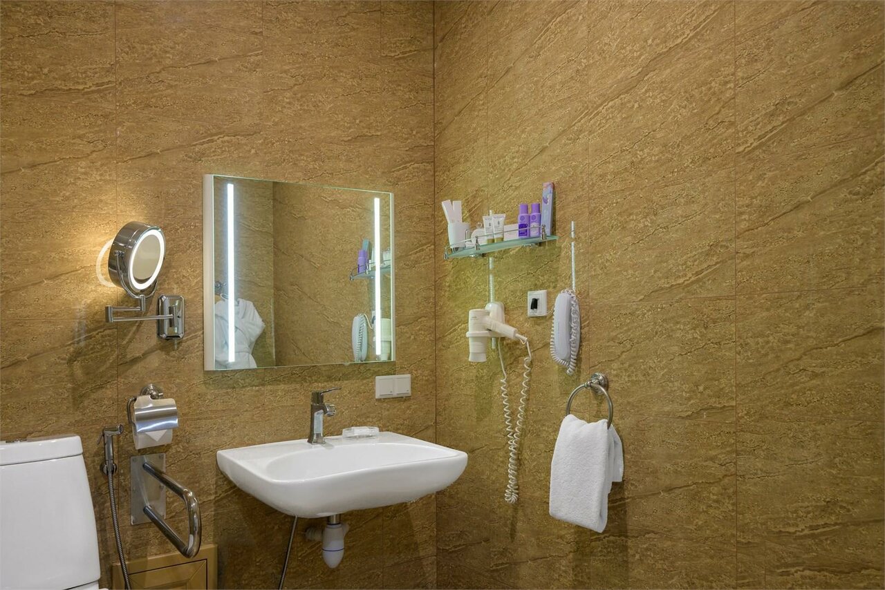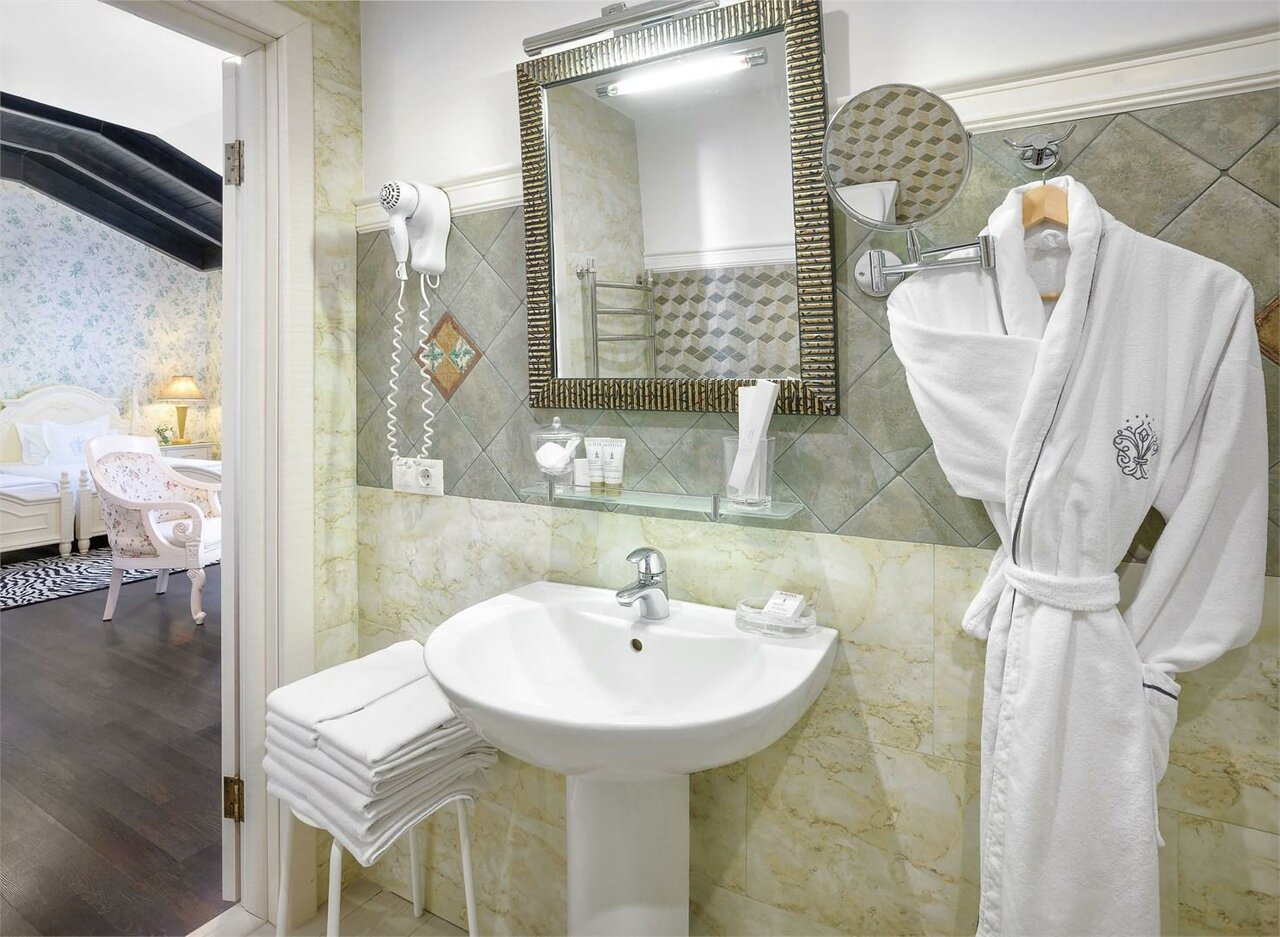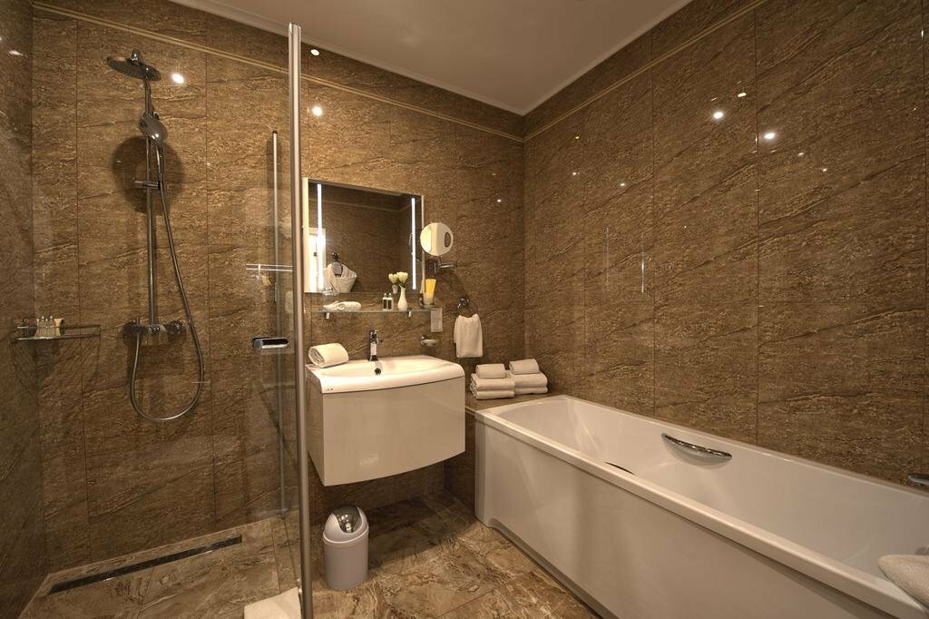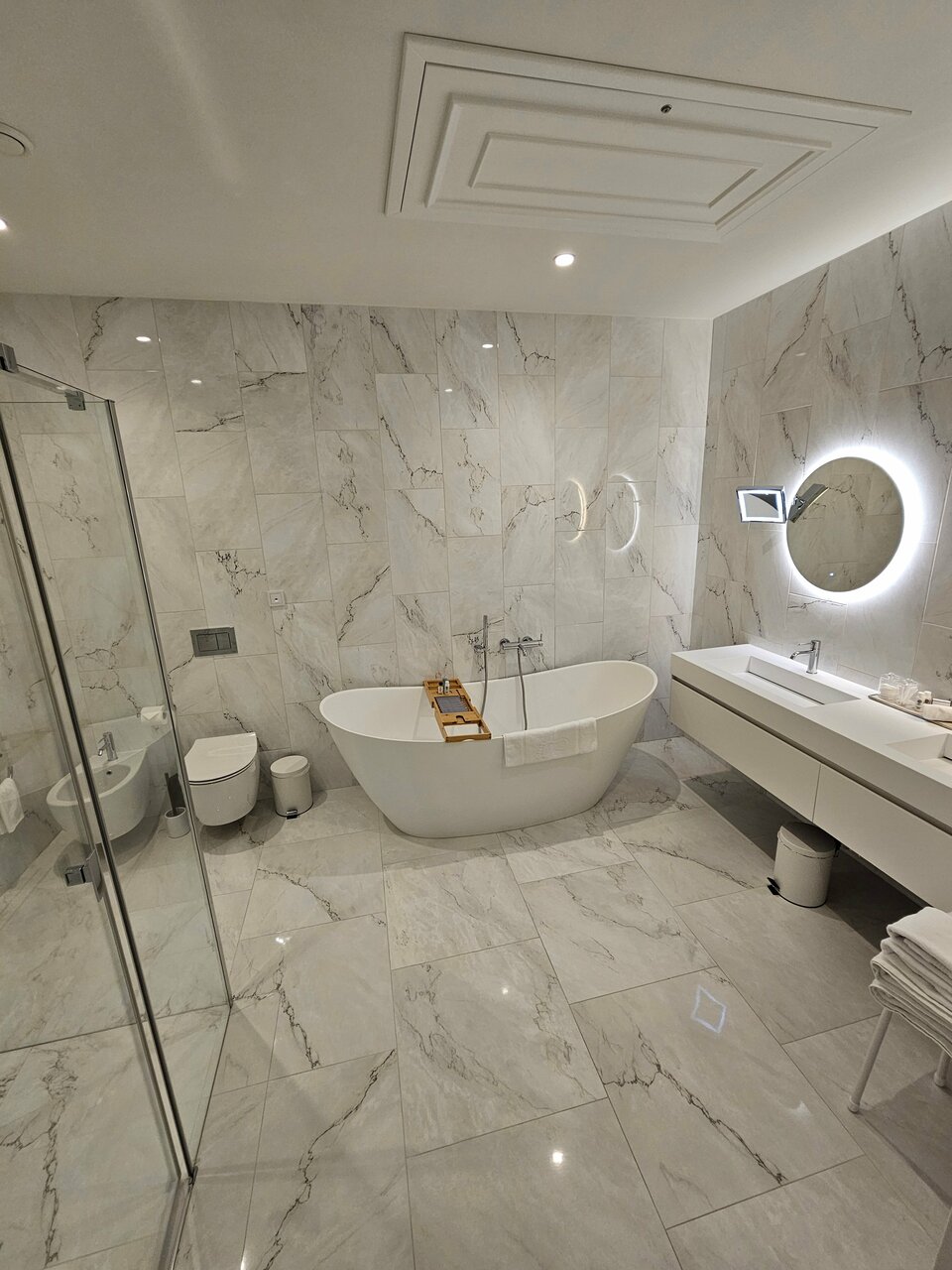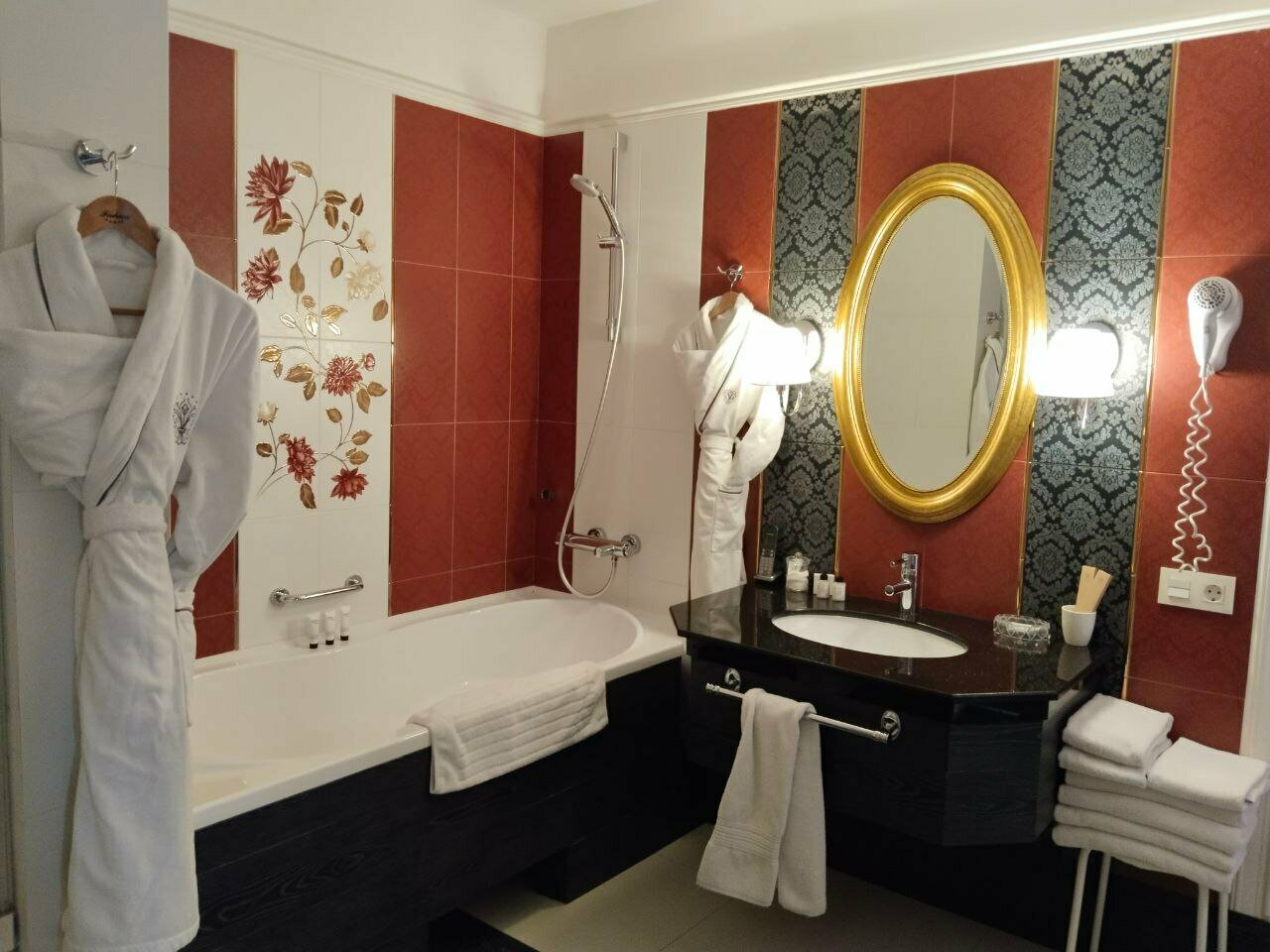 Отличный, просто великолепный отель. Все выдержано в едином стиле, как говорится дорохо-бохато. Комплиментарно — чашка кофе, бутылочка шампанского в номере, выезд на час позднее, но, главное, повысили категорию номера. Спасибо, мне до невозможности приятно! Комнаты просторные, ванная комната выше всяких похвал!