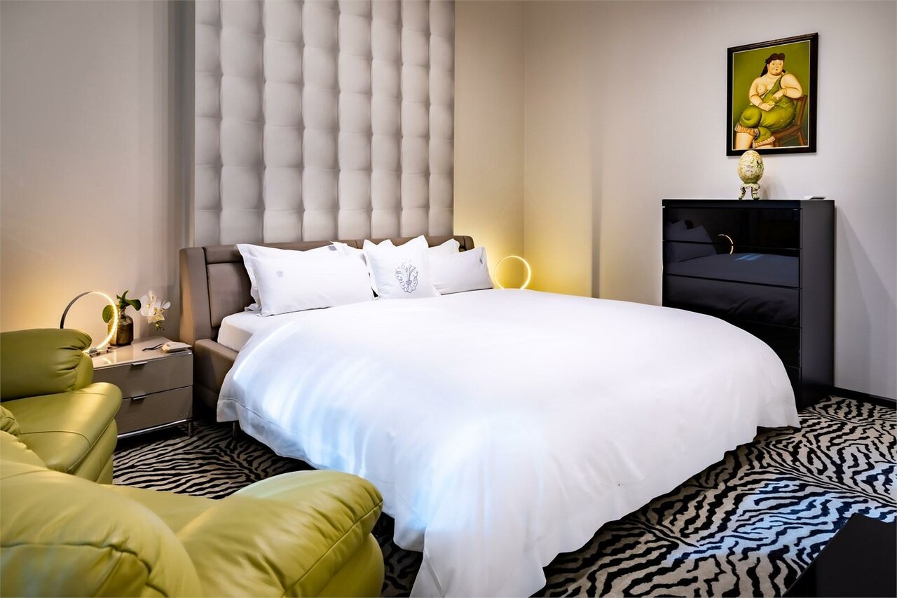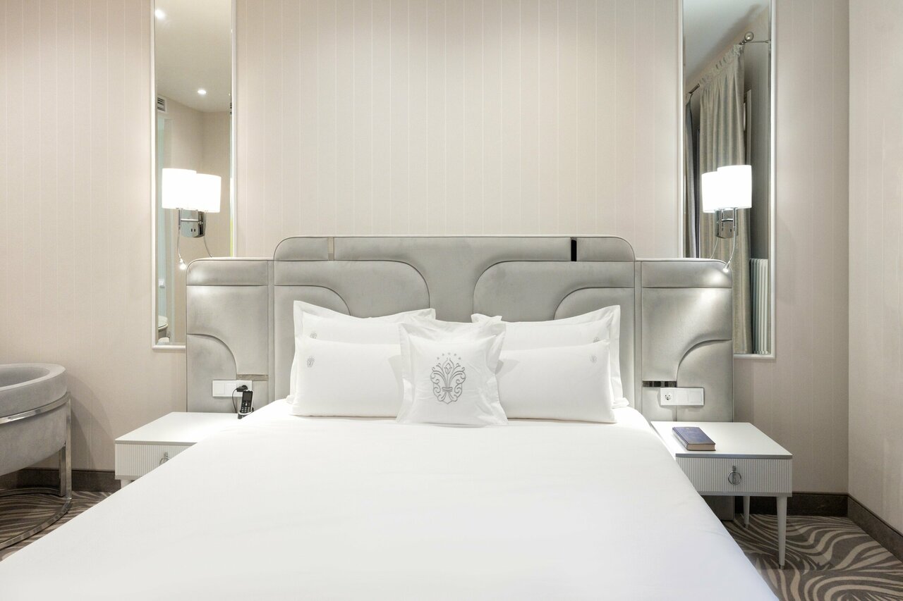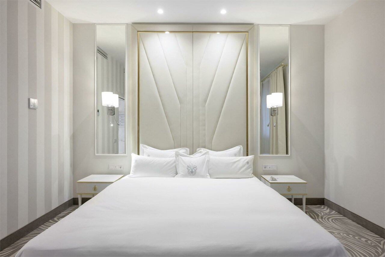 Идеальное решение для тех, кто хочет расслабиться и при этом всегда оставаться в рабочем режиме. Номер оснащен большой кроватью и располагает уютной зоной отдыха.