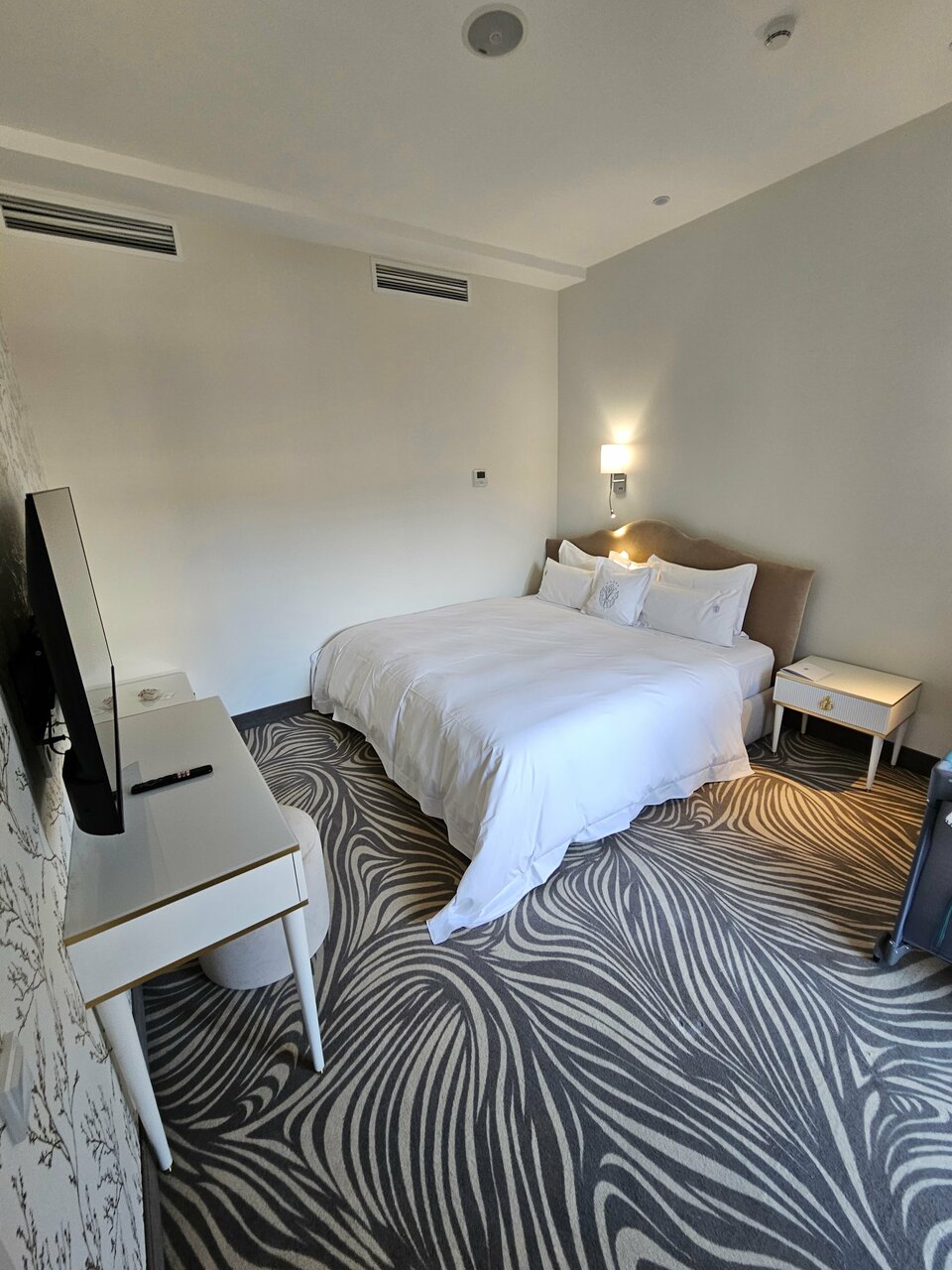 5* нет и близко, отель на 3* максимум с натяжкой! При неплохом красивом на картинках лобби, баре и ресторане номера на этажах как в хостеле — площадь номеров минимальная, кровать не обойдёшь, слышно всё на этаже, стены картонные, шумоизоляция отсутствует в принципе. Интерьеры этажей напоминают бордель. Если хочется выспаться и отдохнуть — отель категорически не рекомендую! Это не 5*!!!