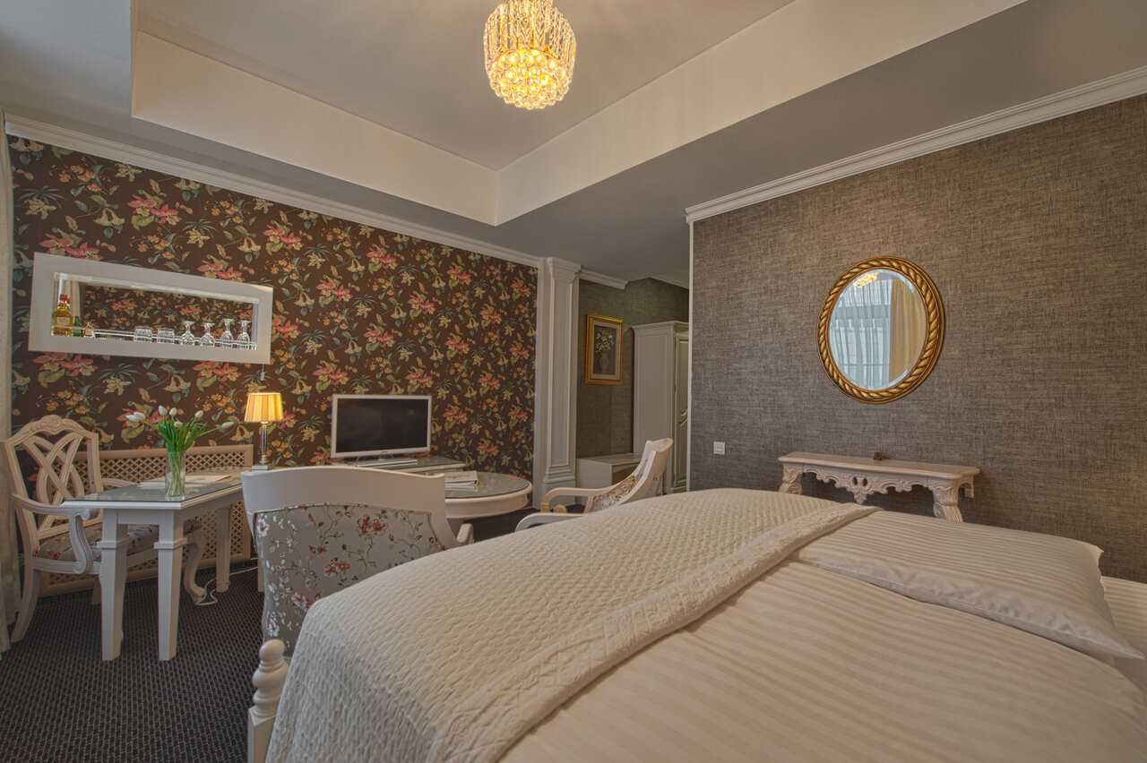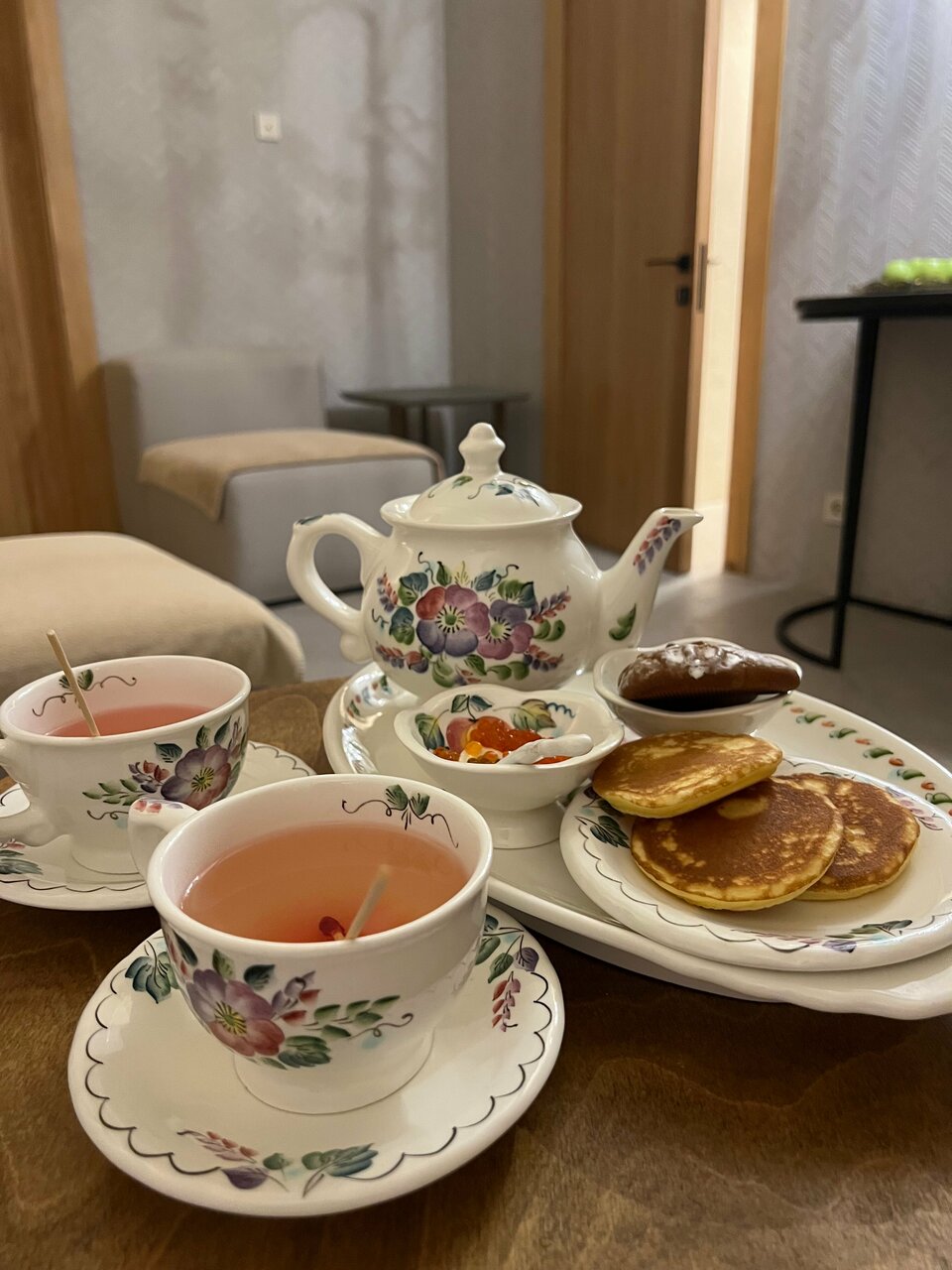 Отель супер!!! Персонал вежливый! В номере было чисто и уютно, хорошая мебель. Минибар на любой вкус (вода, лимонад, водка, пиво, виски, коньяк, вино, шампанское…) Завтрак удовлетворит любого гурмана!!! Принесли в номер свежевыжатый сок ( чайник, кофе и чай были в номере), нарезки красной рыбы, колбасы, ветчины, огурцов и сыра, омлет, блинчики, сырники, мёд, орехи, джем, сметану… В общем, если всё съесть, можно и без обеда обойтись! И это за 1000 руб. с человека. Поверьте, при таком наборе — это халява. Рекомендую!