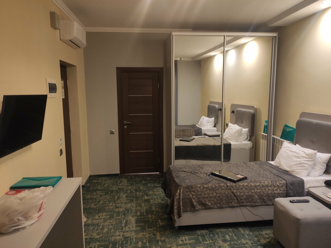 Хороший чистый отель , расположен в тихом спокойном месте , удобноя локация . Хороший ремонт в номерах , удобные кровати.