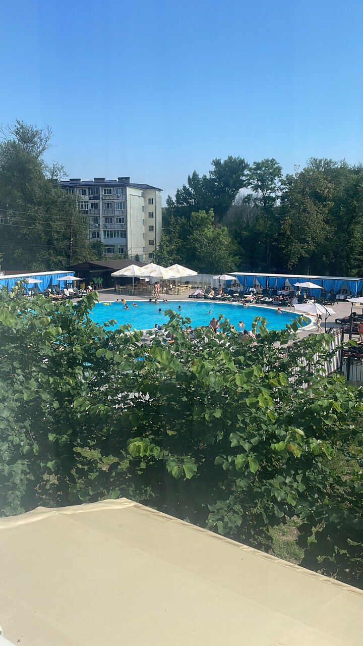 Для жителей Военведа и Каменки идеальный вариант летнего отдыха. Цены стандартные, даже дешевле. Бар на улице. Раздевалки М и Ж под ключ шкафчик. На территории есть спасатель. Место отдыха отлично освещено солнцем. Тень можно создать зонтом или же арендовать крытую беседку. Лежак и зонт бесплатны. Спасибо всем, кто ходит писить в туалет и одевает малышам подгузник при купании. А ещё спасибо девушкам, которые заплетают волосы в хвост. Лучше приходить с утра-Меньше людей и вода прохладная. Отдельный Бассейн для малышей-там больше тенька. В номерах не жила.
