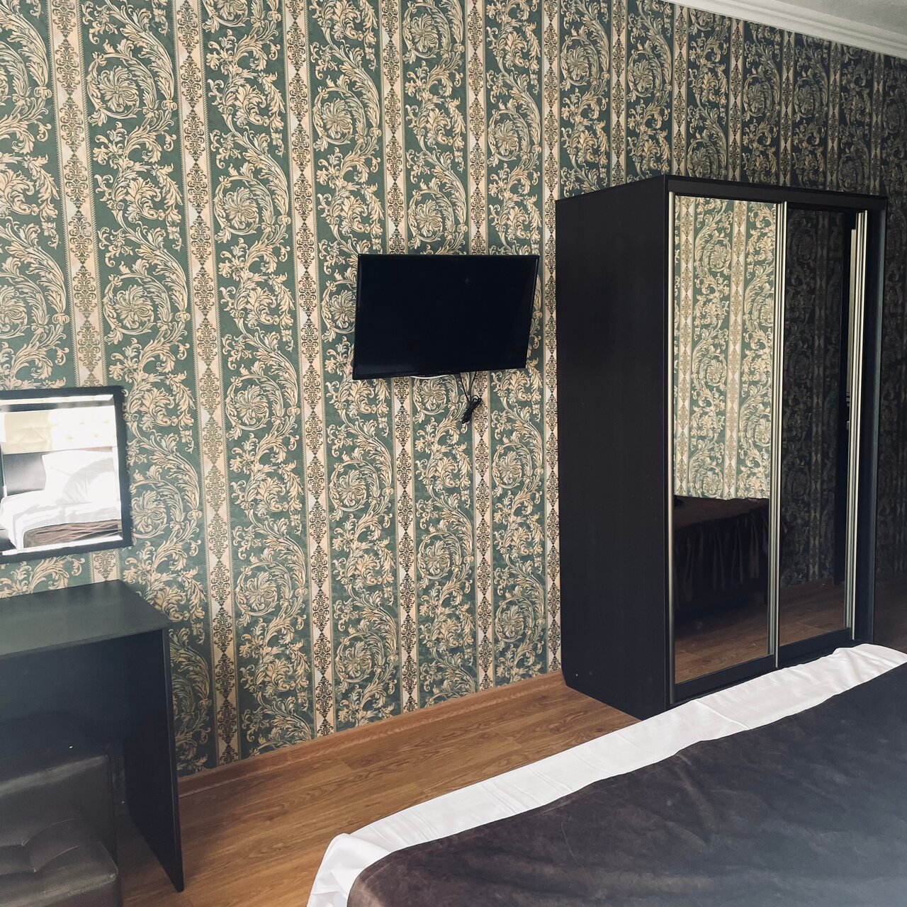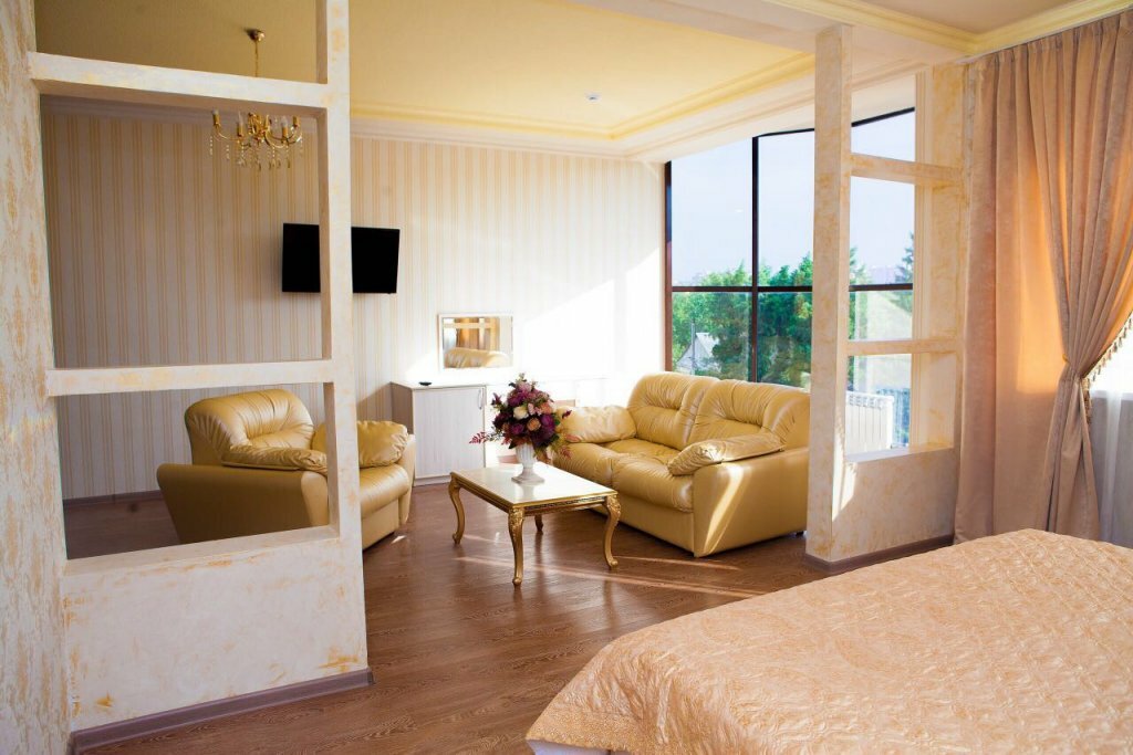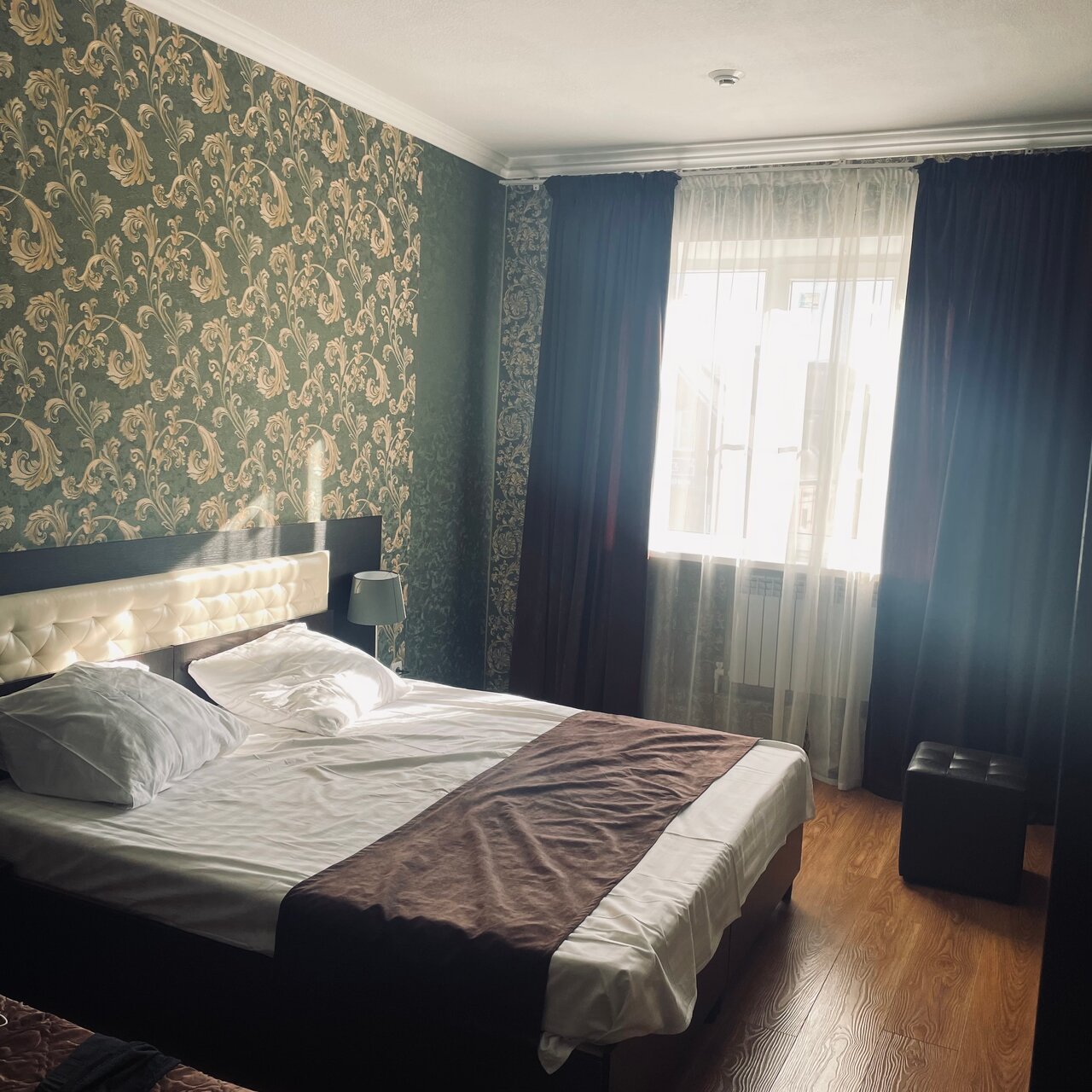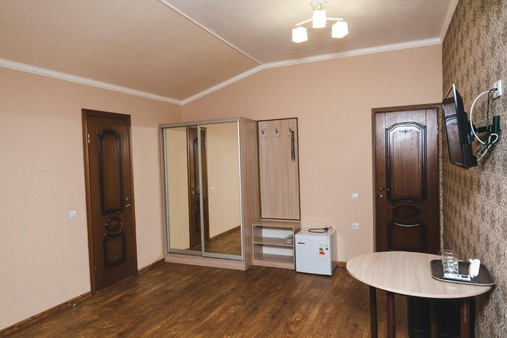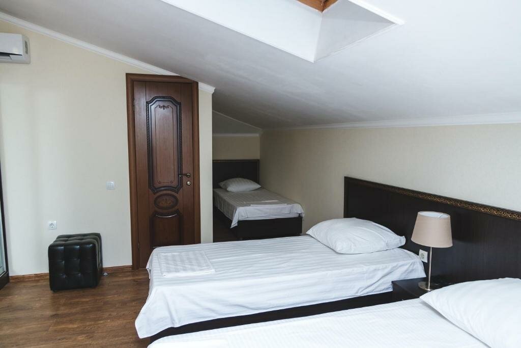 Заехали в трехместный номер, большая удобная кровать, и стандартная полуторка. Чистое белоснежное белье, богатый набор полотенец. В номере кондиционер, чайник, телевизор. В номере идеальный порядок, очень чистые окна, не пылинки. Приветливый персонал. Завтрак за небольшие деньги, просто отвал башки, очень вкусно . Рекомендую! Точно знаю, вернемся сюда снова.
