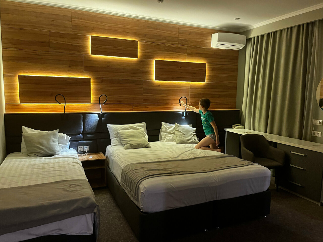Останавливались в этом отеле во время отдыха с детьми. После вкусного ужина обязательно ходим в Батутный парк №1, где дети веселятся и тратят свою энергию.