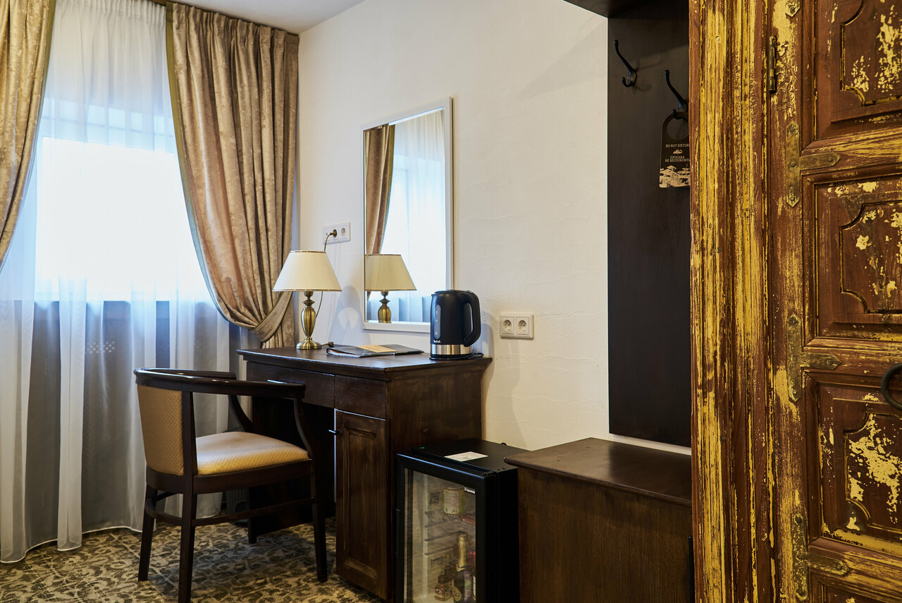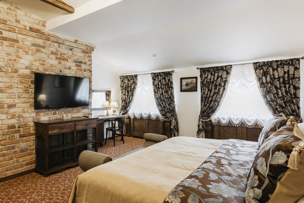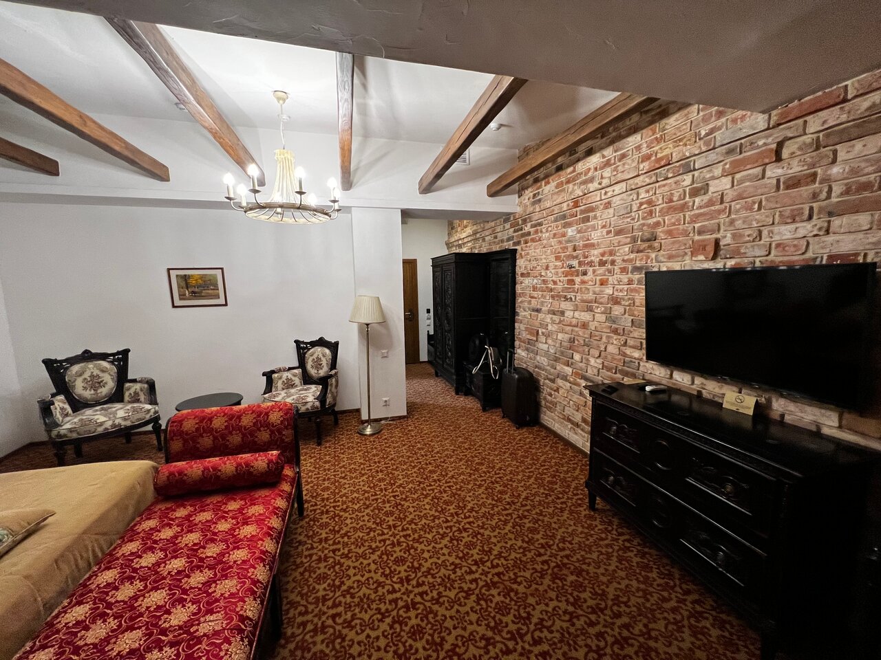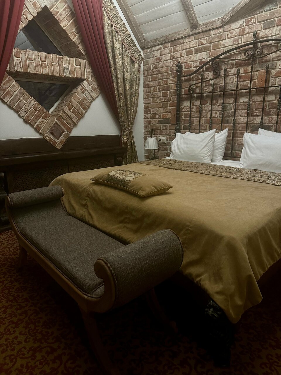 В целом всё хорошо, но в номере было очень душно и жарко. Приехали в конце мая. Окна выходили на дорогу, а не во внутренний двор и поэтому было очень шумно от машин и невозможно выспаться. Кондиционер пытались включить, но из него был очень плохой запах. Завтрак континентальный. Конечно сытный, но все таки лучше когда есть на выбор шведский стол. Внутри интерьер как в замке.