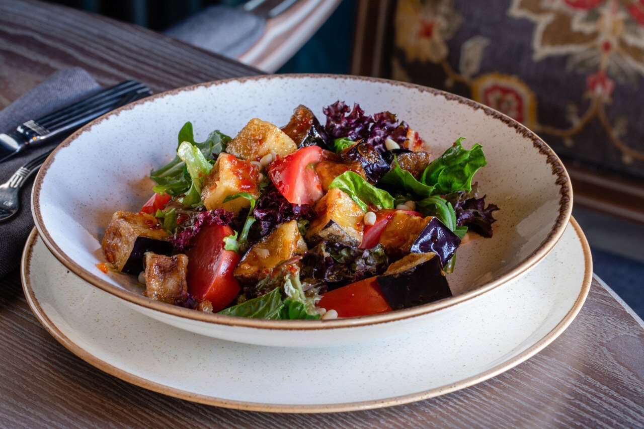 - Оливье с перепелиными яйцами и икрой лосося 500₽
