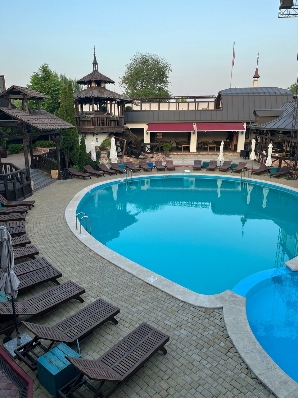Отличный отель! Номера просторные , антуражные и чистые. Все есть ) И бассейн и прекрасный бар ! Кормят хорошо!Будем всегда в нем останавливаться по пути .