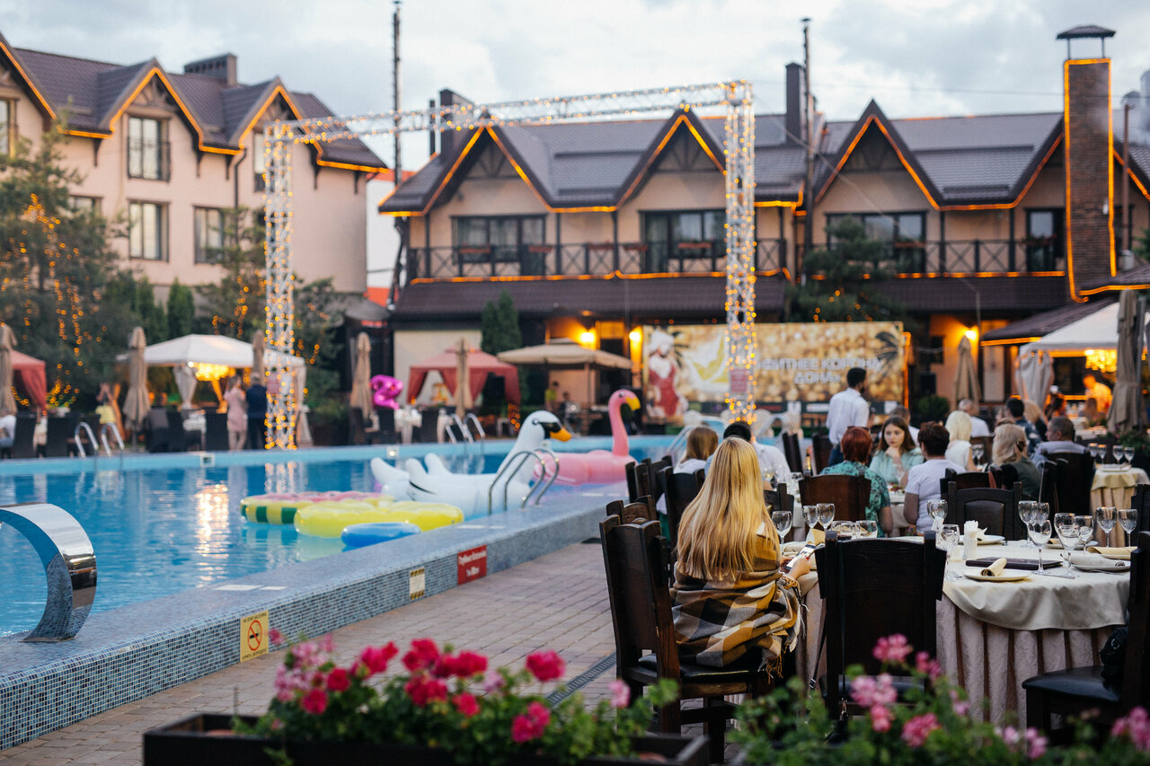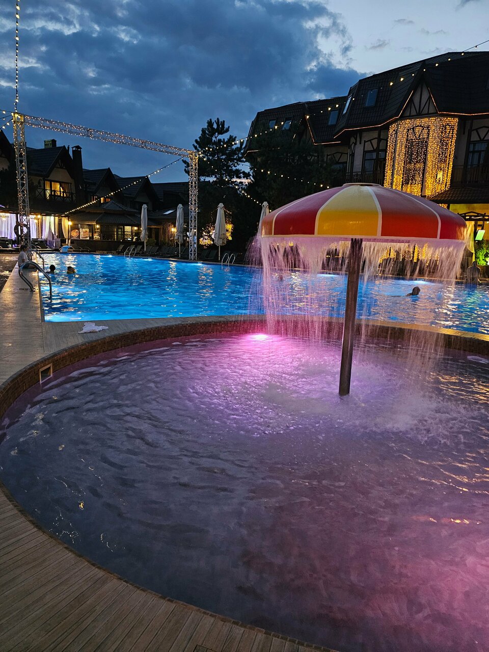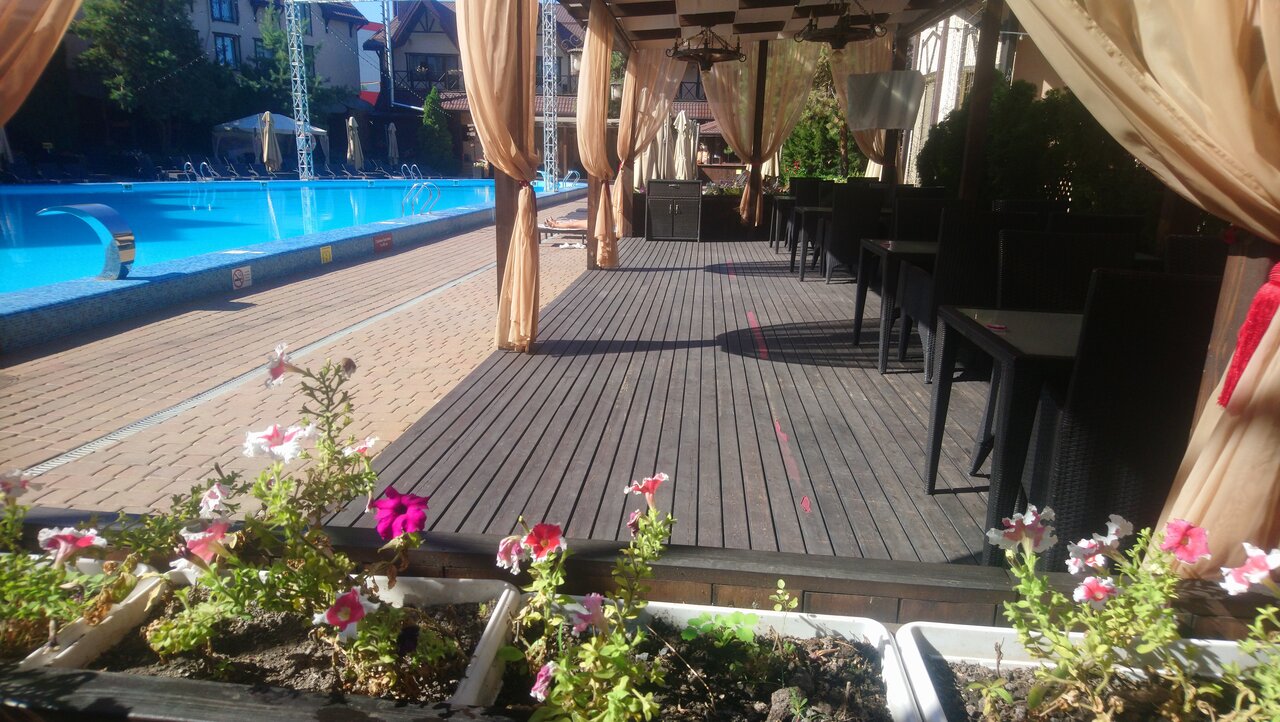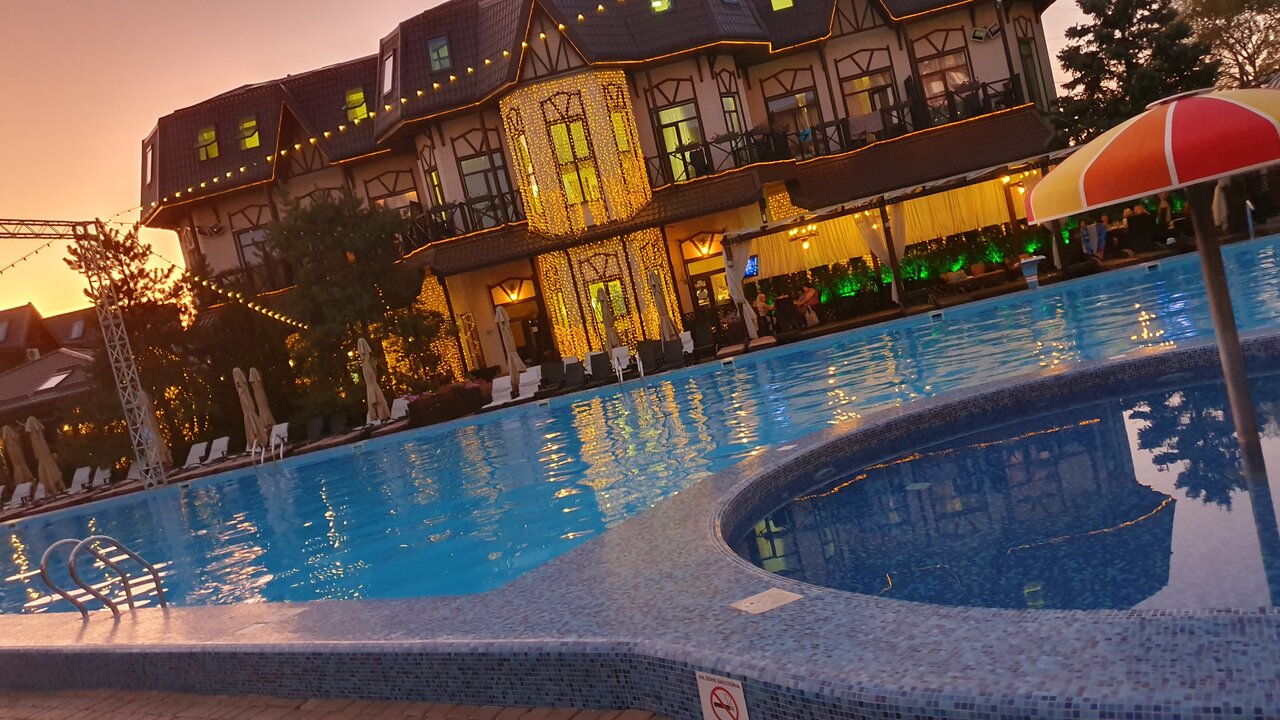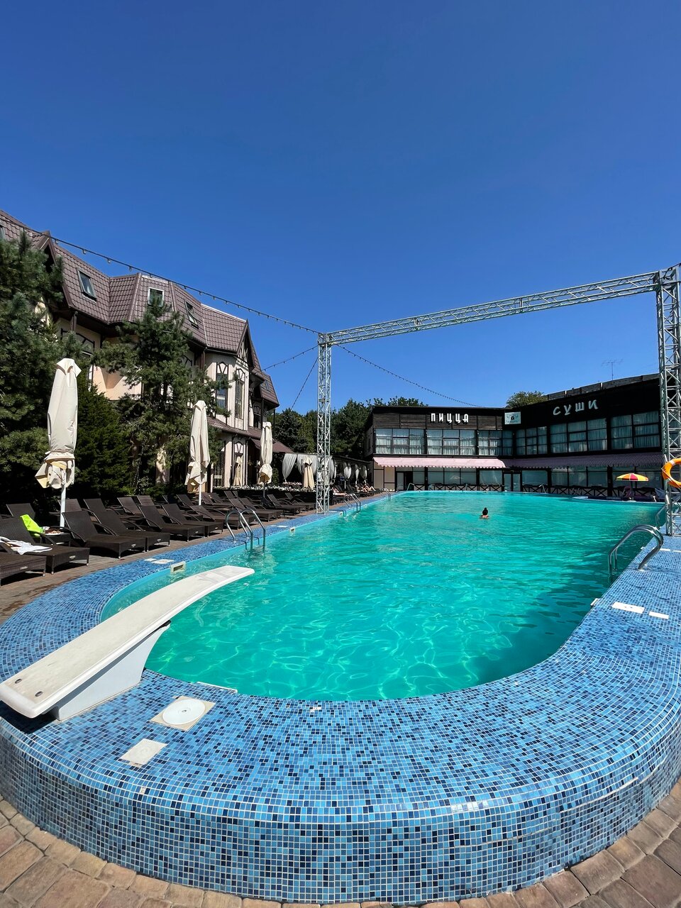 Шикарное место, чистый басеин, детский с подогревом. Вкусная кухня и бар…. Жаль отменили кальяны