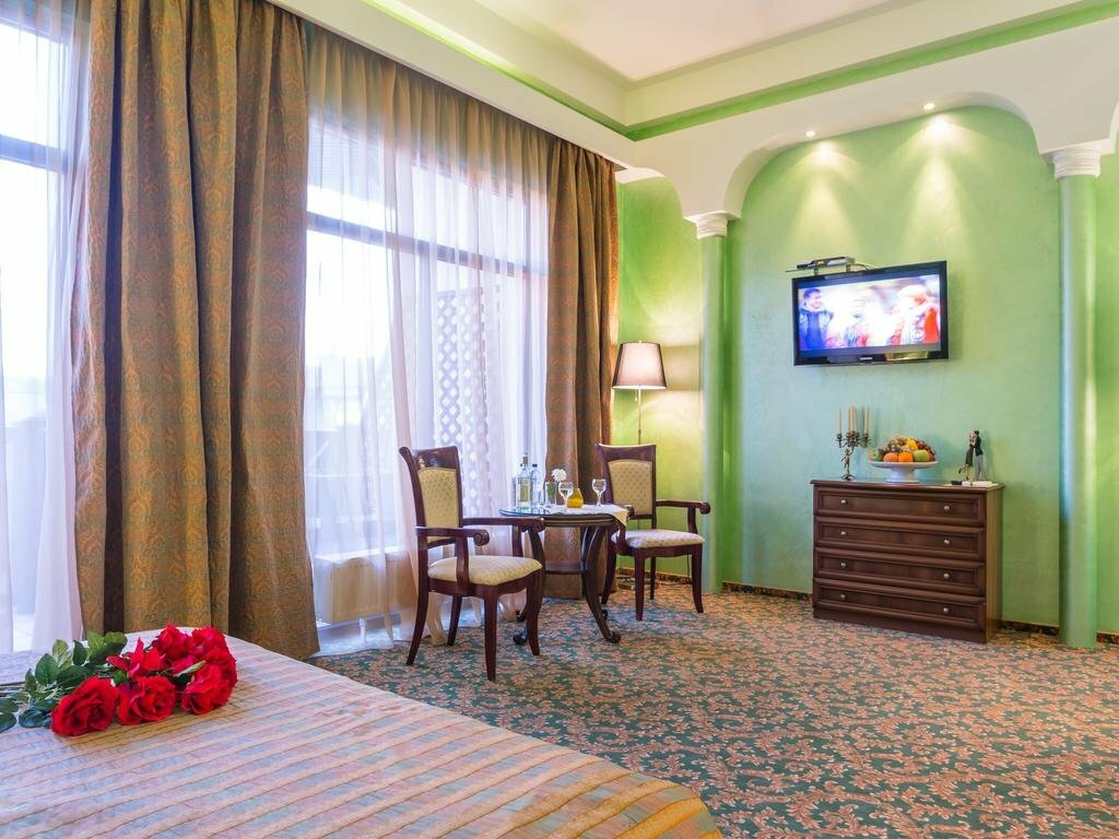 Удобства: — Номера от 5500 ₽/ночь с кондиционером, Wi-Fi, телевизором, санузлом. — Питание: ресторан, кафе, бар, завтрак/ужин (опции). — Бассейны (крытый, открытый, подогреваемый), оздоровительный центр (SPA, сауна, хаммам, массаж, йога). — Бесплатная парковка, конференц-зал, прачечная, сейф. — Для детей: меню, бассейн, кроватки.