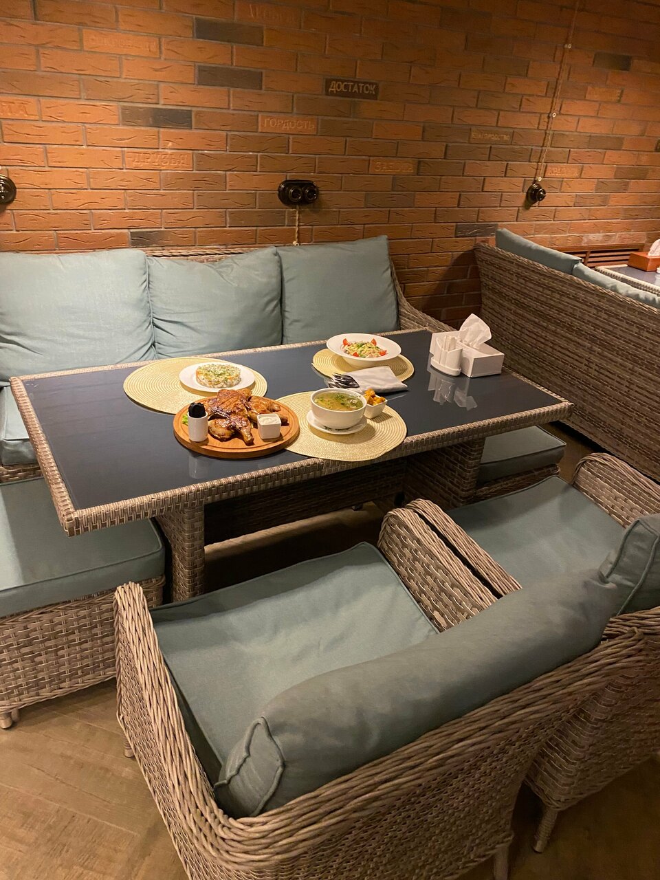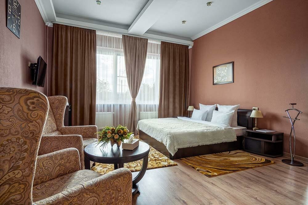 Очень хороший отель. Находится далековато от центра, но поскольку мы были на машине, да и сам Ростов был не главной целью поездки, нас это вполне устроило. Персонал приветливый, номера чистые, довольно большие (потолки высотой около 5 метров, что позволило сделать антресоль со спальным местом), с новым ремонтом, мебелью и сантехникой. В номере двуспальная кровать и удобный диван. Нас было трое взрослых и грудной ребёнок — предоставили детскую кроватку, в итоге все отлично разместились. Уютный внутренний дворик, есть парковка перед отелем примерно мест на 8. Вроде, есть и на территории самого отеля, но мы не проверяли, припарковались снаружи. Завтрак был включён в стоимость номера — вкусно и сытно, есть из чего выбрать. Накрывают стол во дворике или могут принести в номер. Также предлагают обед и ужин по меню.