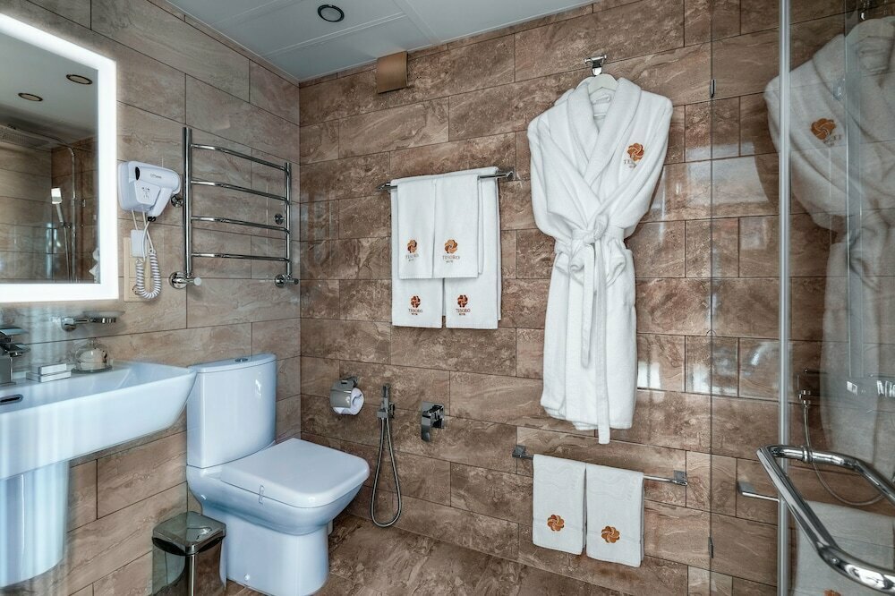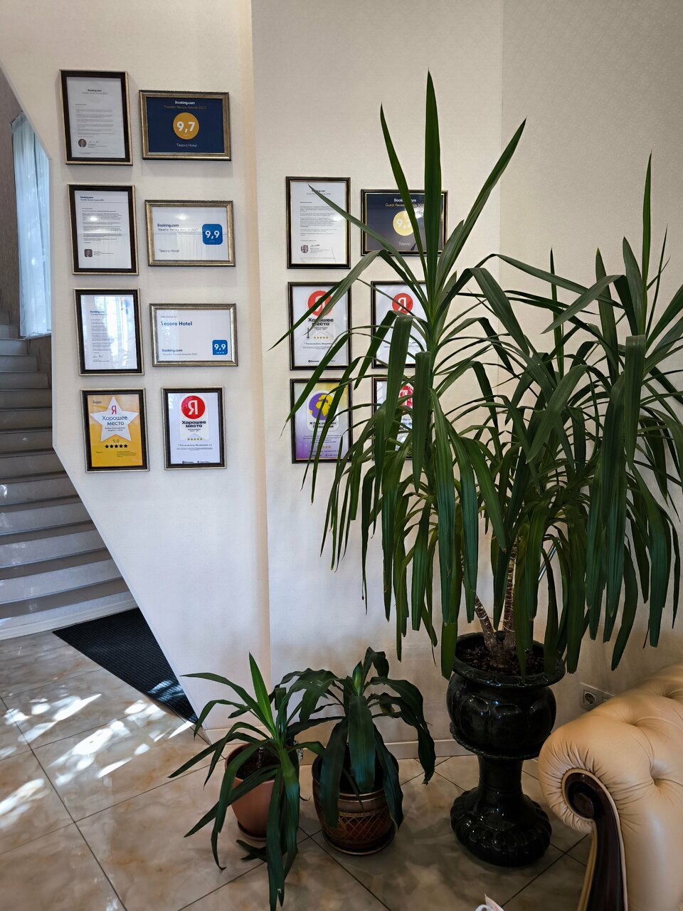 Останавливались в Тесоро по дороге на море, бронировали номер с улучшенной планировкой. Номер очень комфортный, на втором этаже кровать, внизу диван. Телевизоры и внизу и наверху. Предоставляют очень вкусный завтрак прям в номер в определенное время, которое попросите. Есть уютный дворик с беседкой. Назад когда ехали, даже искать ничего не стали, снова вернулись в Тесоро, но уже номер Люкс с джакузи! Честно на следующий день хотелось просто сходить и ещё на сутки продлить номер, так чисто, так уютно, такие вкусные завтраки, отдохнули между двумя днями дороги, как короли. По запросу предоставляют кроватку детскую и стульчик для кормления, очень удобно. Спасибо персоналу, спасибо управляющему и хозяину гостиницы, в Ростове только к вам и всем советовать будем! Всего наилучшего!