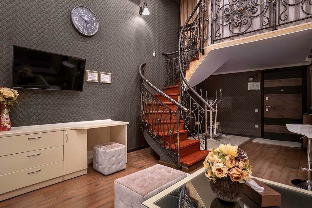 - Великолепный интерьер.; Новый ремонт, мебель и сантехника.; Высокие потолки и антресоли.; Внимание к деталям и забота о гостях.; Скидки в ближайших ресторанах.