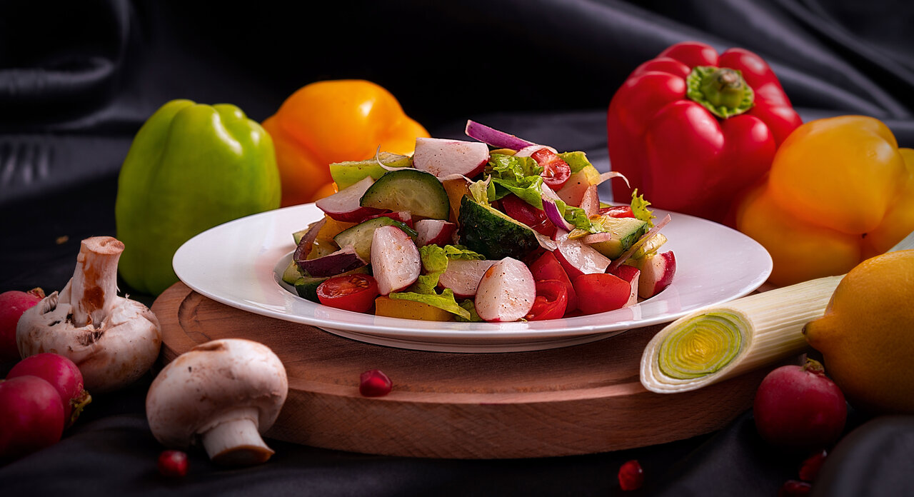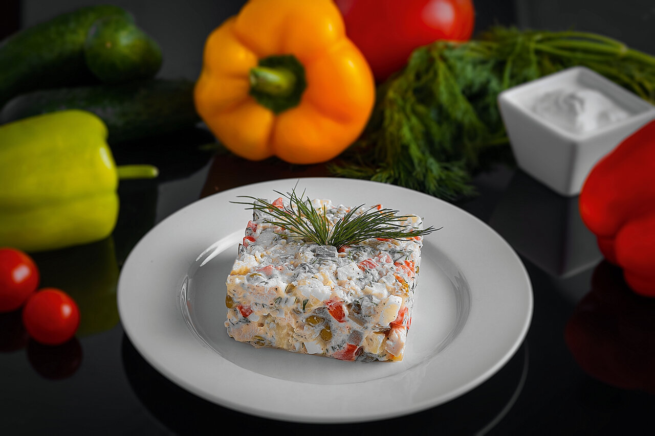 Салат Греческий - 250 гр. - Помидоры чери, Огурцы свежие, Лук красный,Перец болгарский, Лист салата, Сыр фета, Маслины без косточек, Масло оливковое, Специи