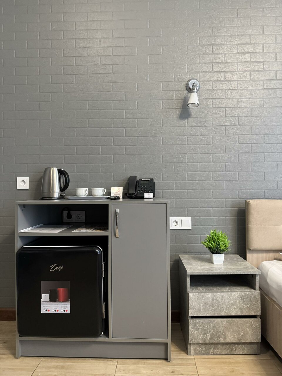Ночевал в номере ‘комфорт’ на 3м этаже. Я в восторге от номера! За 2тыс.руб., двухспальная кровать, холодильник, жидкое мыло, шампунь, гель для душа. На первом этаже здания хорошее заведение где можно перекусить.