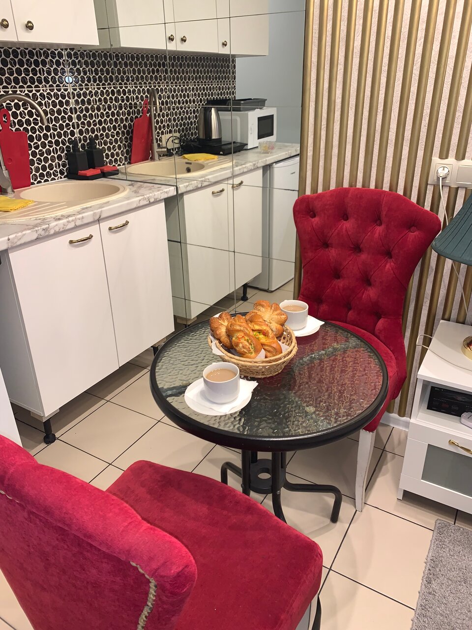Очень понравились апартаменты. Есть все необходимое. Чистые, аккуратные. Достаточно тихий район. Хорошее расположение, рядом очень много магазинов (пятёрочка, магнит, чижик), в шаговой доступности рынок. Автобусная остановка рядом, 30 минут и ты в центре. В общем остались довольны. Рекомендую!