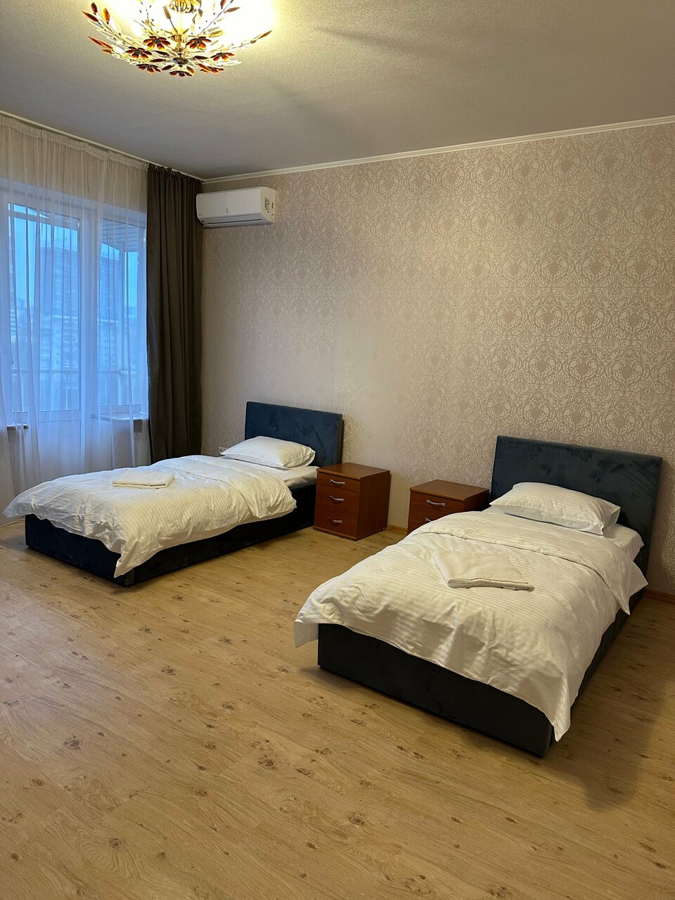 Просторная комната 25 кв м. Кровать с ортопедическим матрасом ascona и белоснежным сатиновым бельем. Ванная комната и кухня общие.