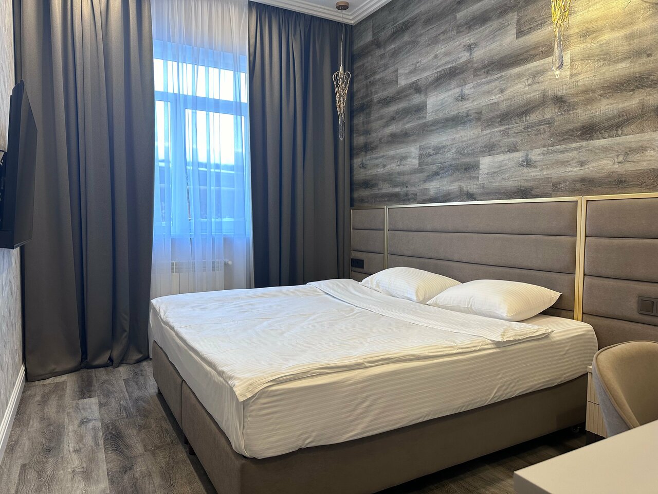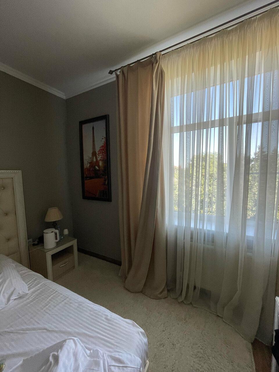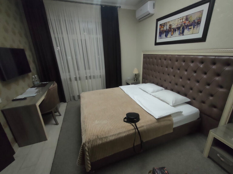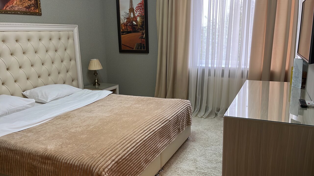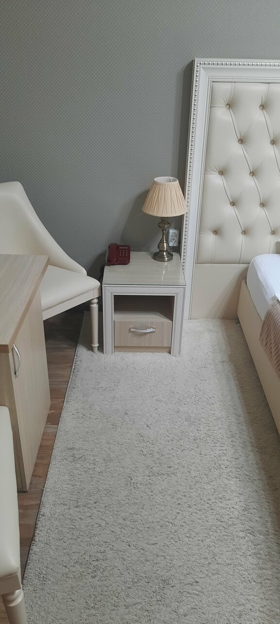 Отличное место для отдыха. Обслуживание на высшем уровне. Завтрак свежий и все вовремя. Все спросили, уточнили, подсказали. Номер чистый, уютный. Бесплатный Wi-Fi. Халаты, полотенца, тапочки, гель для душа, шампунь, одноразовый зубной набор, фен, мини холодильник со всем необходимым, а также большой шкаф для ваших вещей. Меню недорогое и вкусное. Водогрейка с тёплой водой, спит-система, тёмные шторы — чтобы все могли выспаться. Удобное место со столом — что помогло поработать. В здании идёт ремонт, но все работы заканчивают до 18ч, что позволяет прекрасно отдохнуть после рабочего дня. Единственный минус не очень удобные подушки попались.