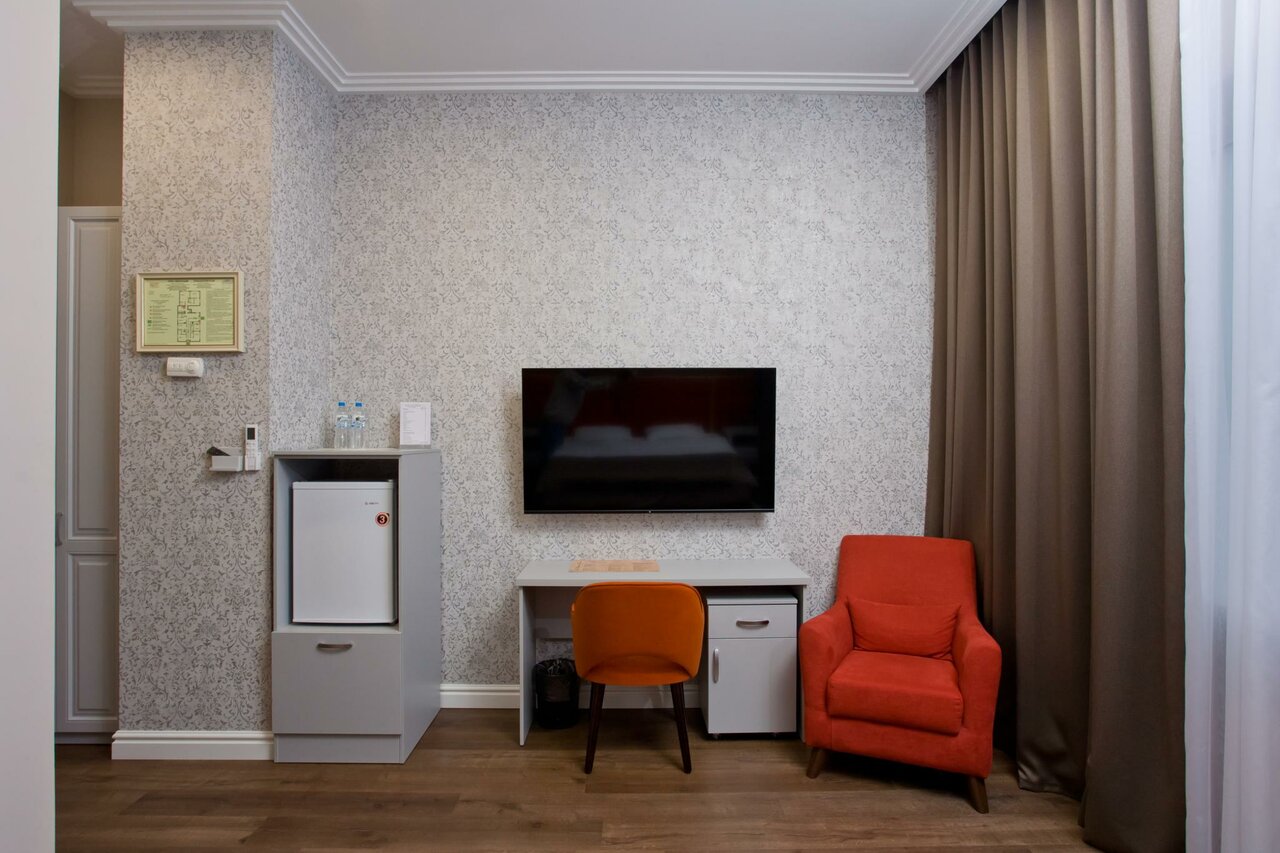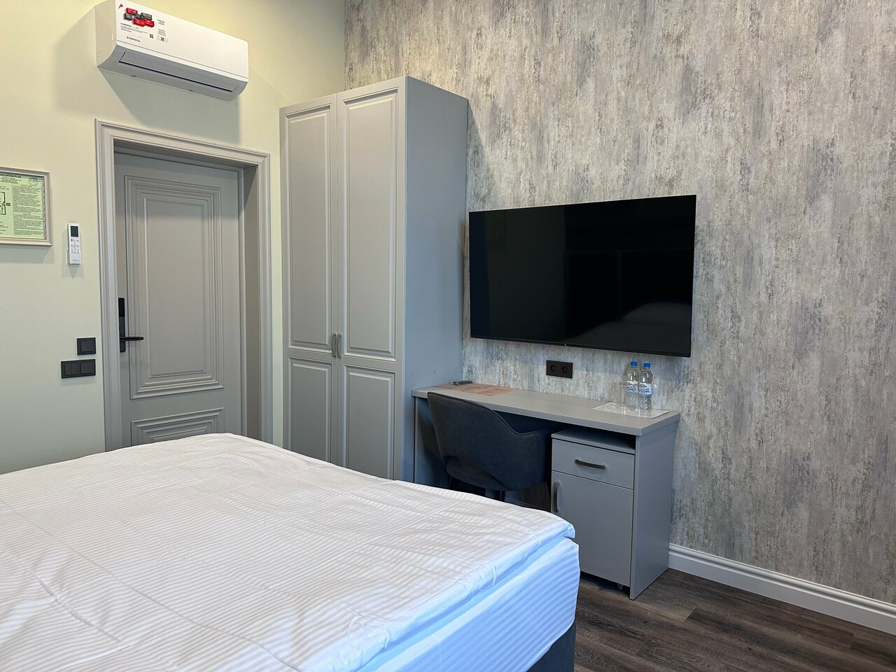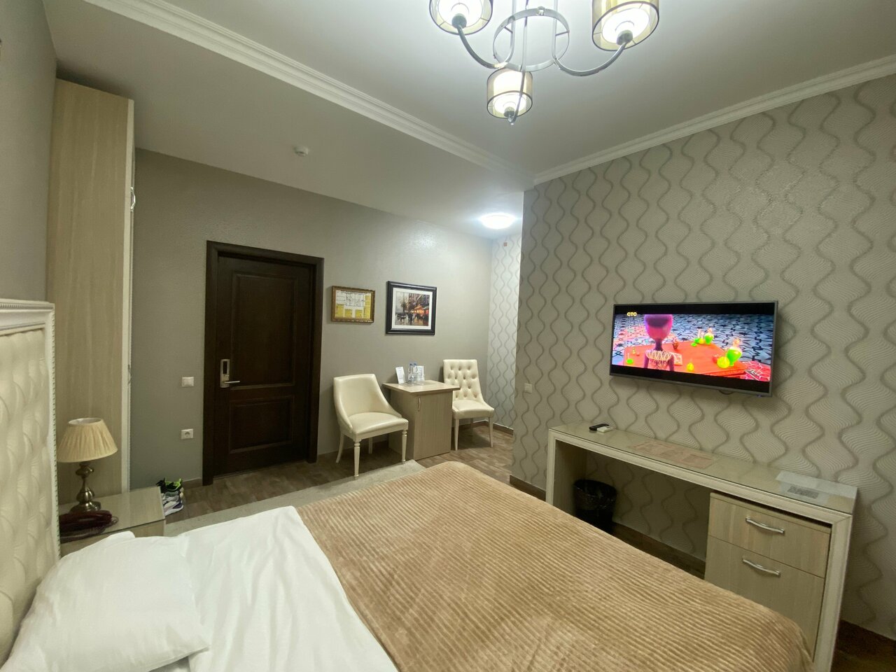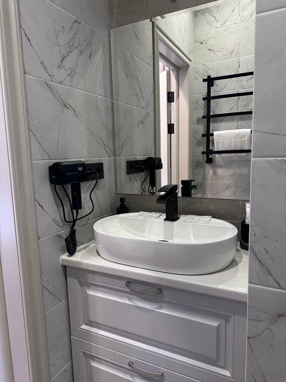 Отличное место для отдыха. Обслуживание на высшем уровне. Завтрак свежий и все вовремя. Все спросили, уточнили, подсказали. Номер чистый, уютный. Бесплатный Wi-Fi. Халаты, полотенца, тапочки, гель для душа, шампунь, одноразовый зубной набор, фен, мини холодильник со всем необходимым, а также большой шкаф для ваших вещей. Меню недорогое и вкусное. Водогрейка с тёплой водой, спит-система, тёмные шторы — чтобы все могли выспаться. Удобное место со столом — что помогло поработать. В здании идёт ремонт, но все работы заканчивают до 18ч, что позволяет прекрасно отдохнуть после рабочего дня. Единственный минус не очень удобные подушки попались.