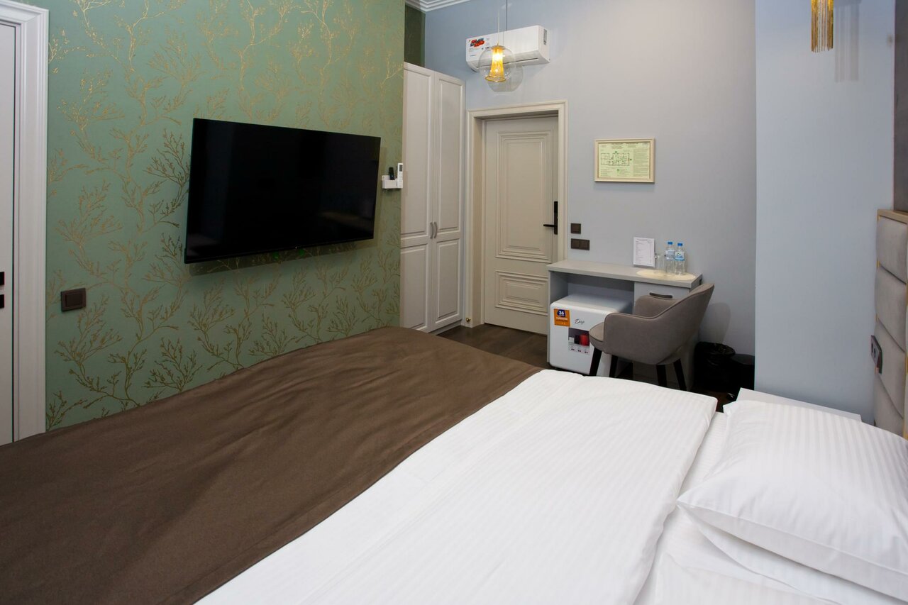 Услуги: — Номера (от 1200 до 4000 ₽/ночь) с кондиционером, Wi-Fi, санузлом, телевизором, феном, мини-баром и звукоизоляцией. — Бесплатные: парковка, камера хранения, детские кровати (0–3 года), интернет. — Платные: трансфер (аэропорт, вокзал, казино), детские кровати (4–10 лет). — Дополнительно: ресторан, кафе, общая кухня, терраса, летняя веранда, прачечная, сейф, коворкинг, доставка еды в номер.