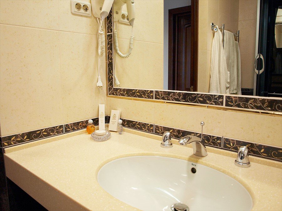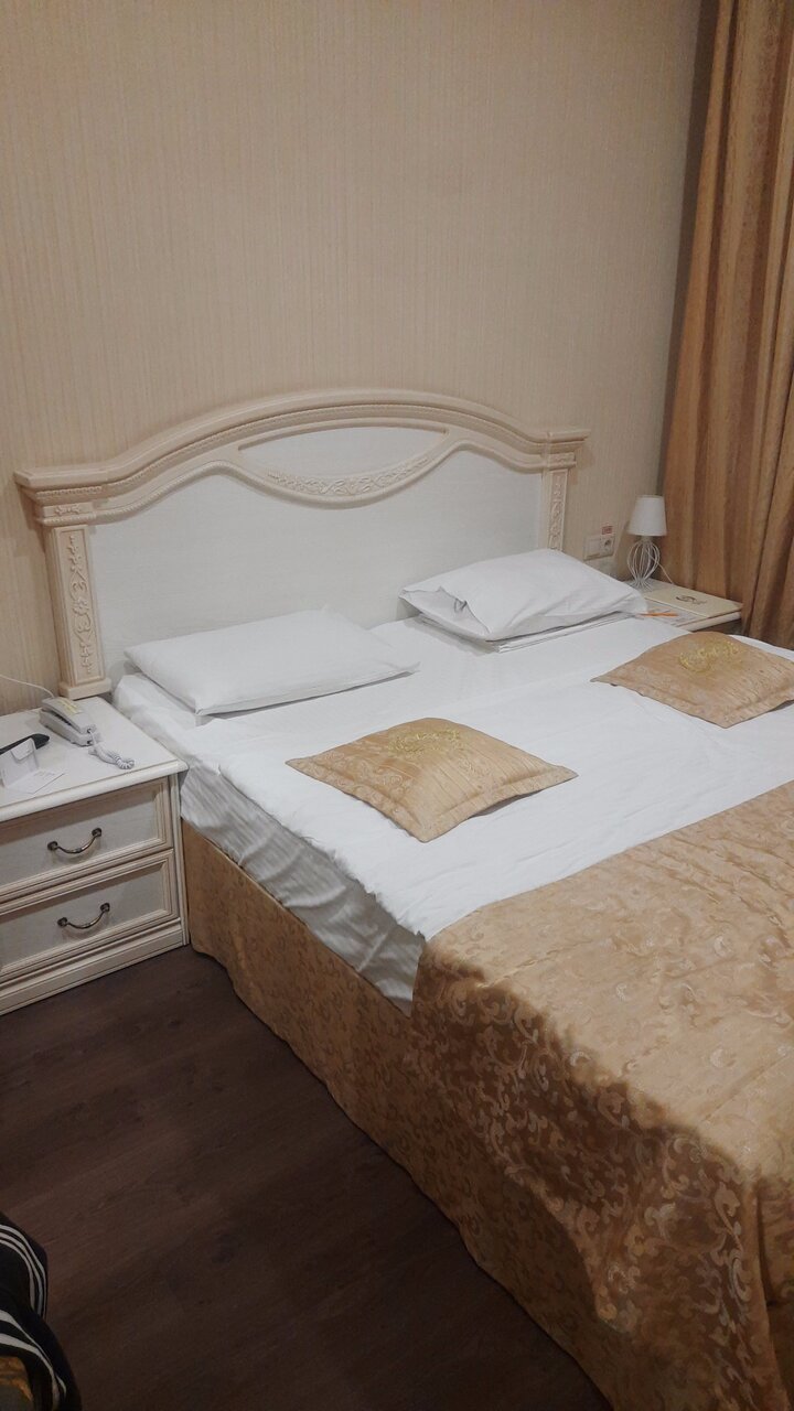 Более грязного номера еще не встречала. Ванная. Душевая кабина просто сгнила. Она вся в плесени. Вентели горячей и холодной воды с претензией на стиль. Но! их влажными руками просто невозможно закрыть. ( Комната. Неприятный запах пыли и нафталина встретил нас. Она никогда не видела влажной уборки! Все обои в отвратительных пятнах, которые вроде и можно было отмыть. Но зачем? Кровать. Проваленная, с развалившимся матрасом. Пододеяльник с разрезом по всему боковому шву наглядно демонстрирует одеяло в жёлтых пятнах и волосах. На полу везде пыльные грязные паласы. И вроде руководство читает отзывы и даже всех благодарит за них. Но ничего не делает. Видно ждут когда все окончательно сгниет само. Раз существующее состояние разрухи и упадка их устраивает ( Если уж вы дочитали до этого момента, то сделайте выводы и Найдите другую гостиницу.