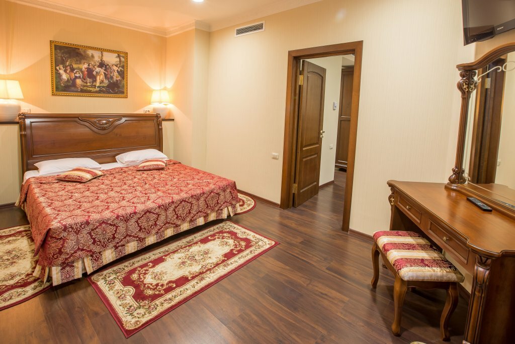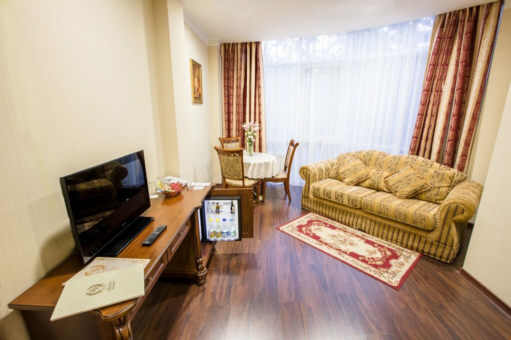 Внутреннее убранство номера выглядело супер. Ванная комната как в 5 Турции. Завтрак шведский стол. Номер у нас был большой и двухкомнатный. В номере есть все необходимое: холодильник, телевизор. В ванно все тоже есть в ТЧ одноразовые зубные щетки и паста. Парковка у входа и имеется, но она довольно ограничено. Мы приехали на ночлег в субботу 23.55 и там оставалось ещё 2 места.
