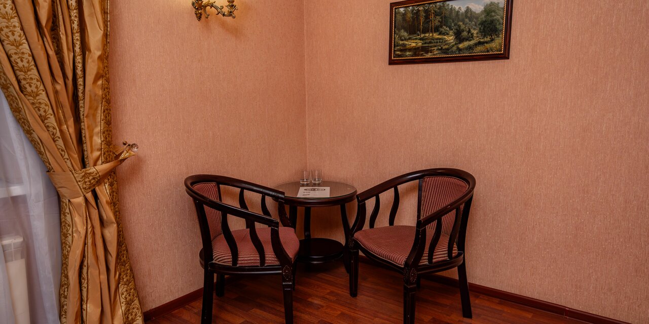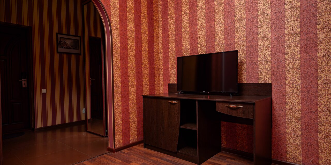 Номер категории «Полулюкс» включает в себя двуспальную кровать, ЖК телевизор, WI-Fi, телефон, сплит-система, душевая кабина, санузел, туалетный столик, банные принадлежности, фен, тапочки, халаты.