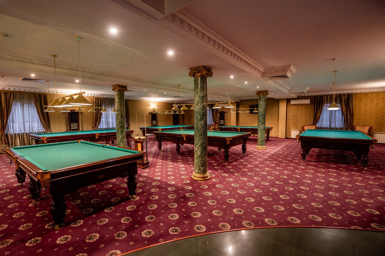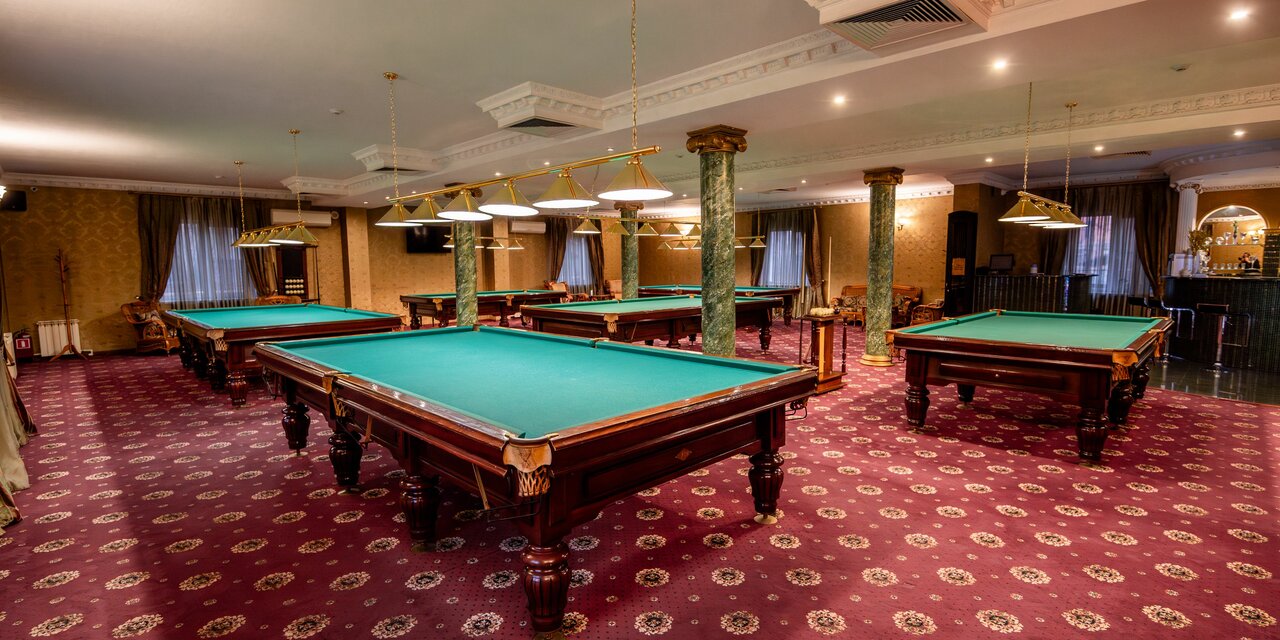Профессиональные столы 10 и 12 футов, и приятная атмосфера бильярдной являются нашими отличительными чертами.Стоимость 500 руб 1 час, VIP-зал: 1000 руб час, Аренда профессионального кия 500 руб