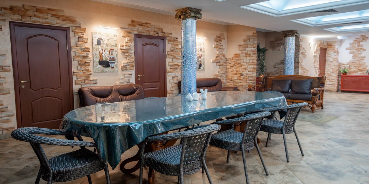 Отдыхали большой компанией в сауне, места на стульях всём не хватило, но спасли диваны))). Много места, горячая парилка, предоставляются белоснежные простыни. Рекомендую.