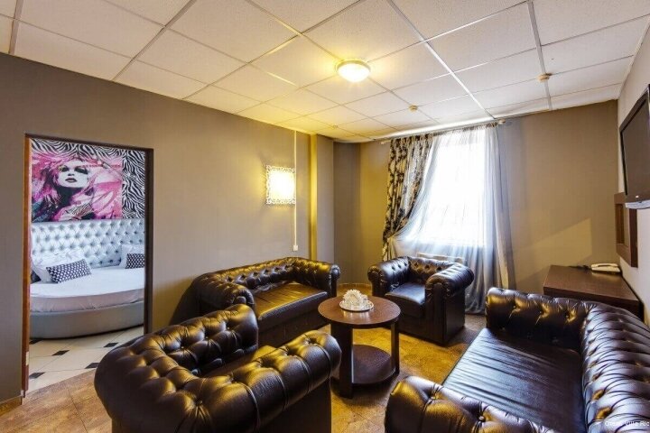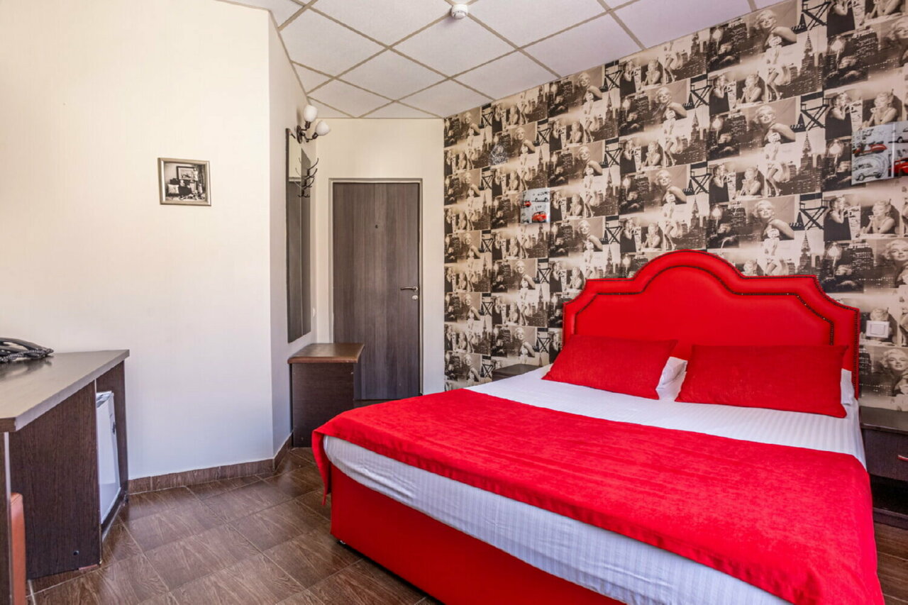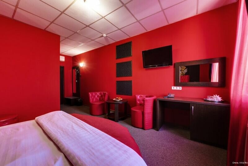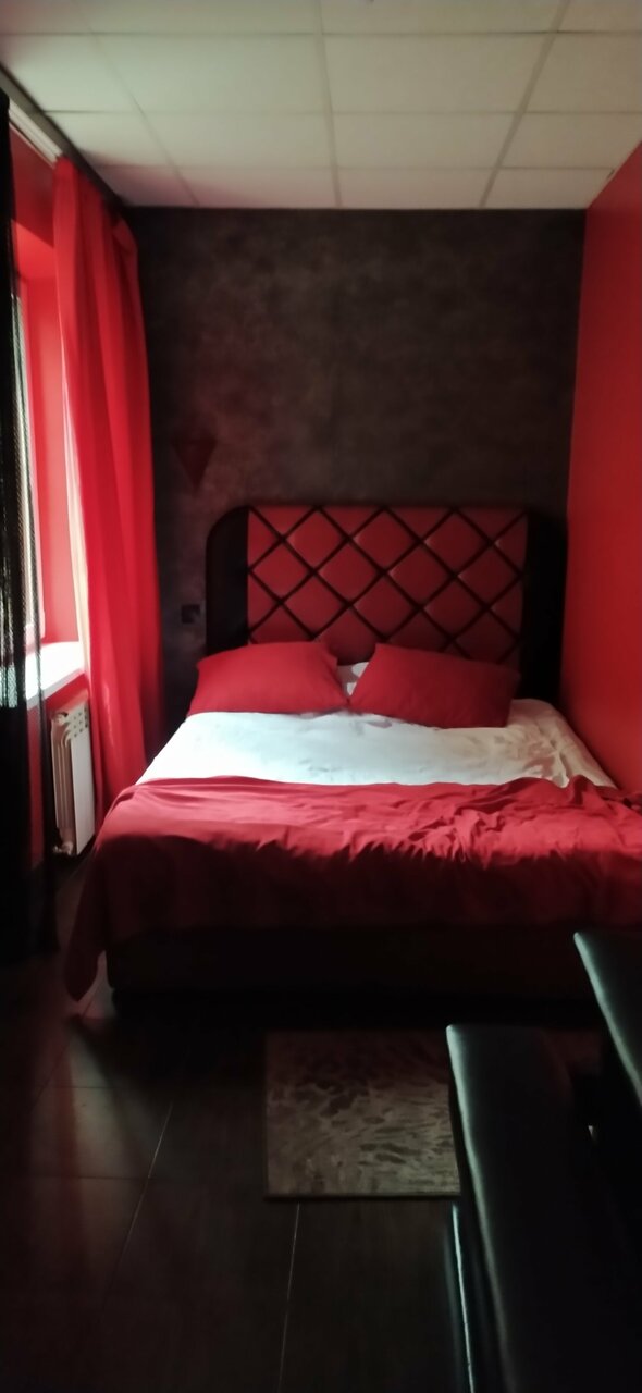 Приехали после 17-00 часов,уставшие,после десятичасовой езды на авто,свободным был лишь один номер. Администратор заранее предупредила что номер в красных тонах и перед заселением всё же посоветовала сперва ознакомиться с номером.Чисто,тихо,комната правда не для отдыха а для утех.Рядом парк.