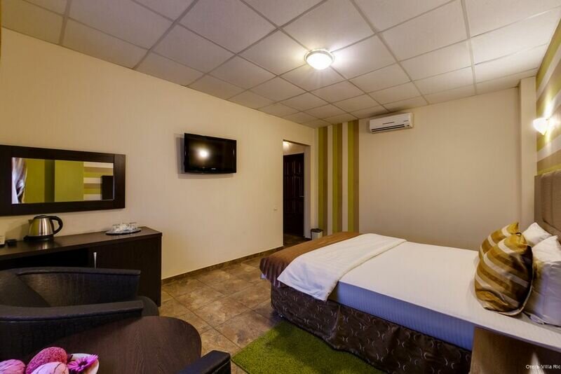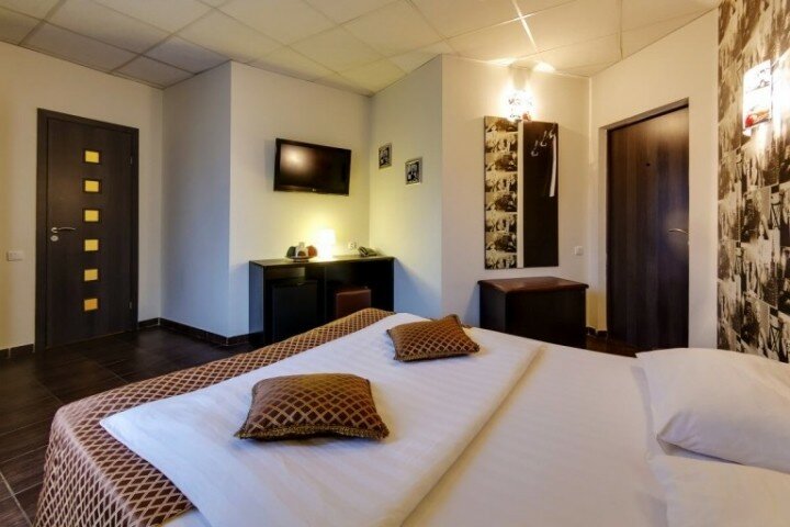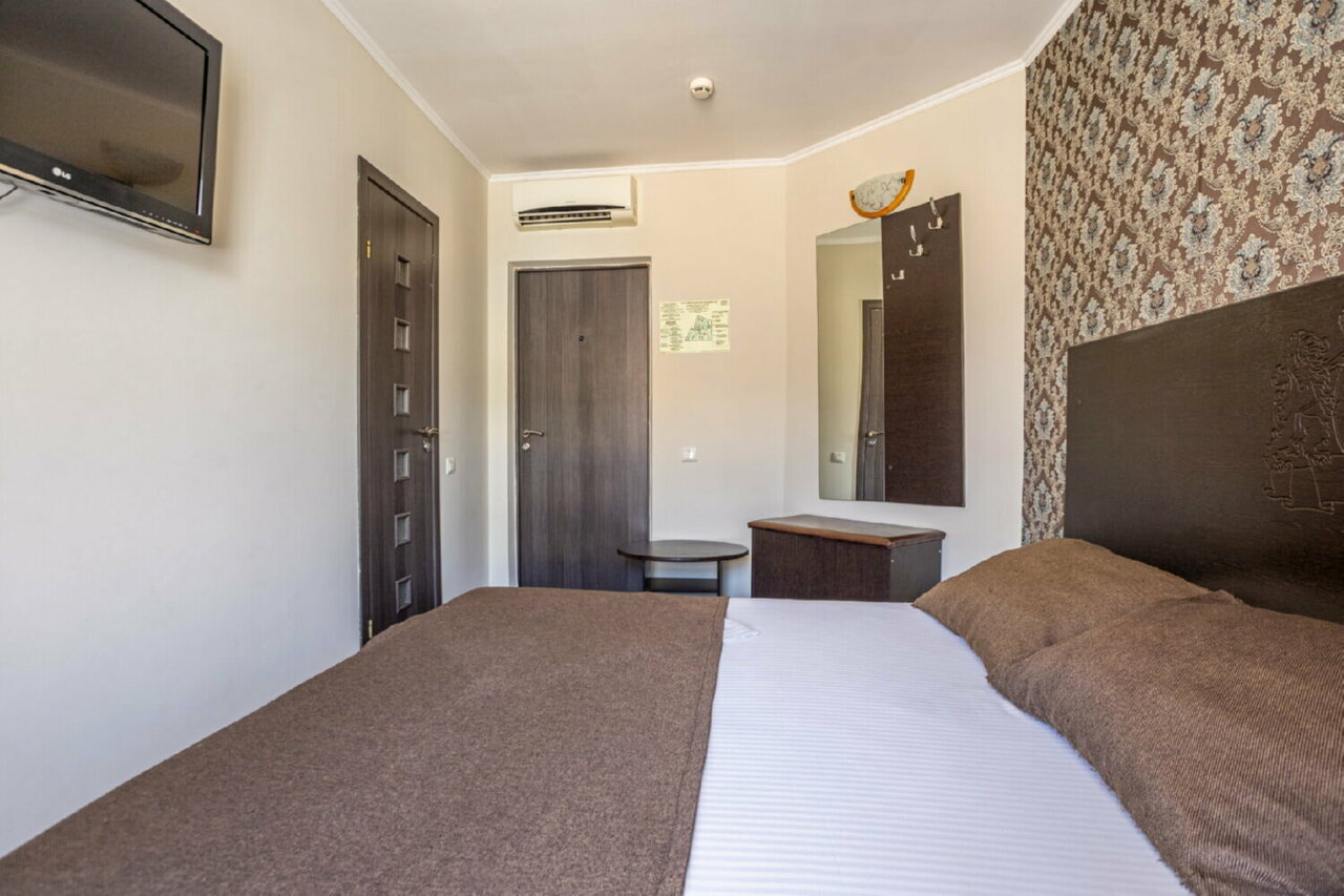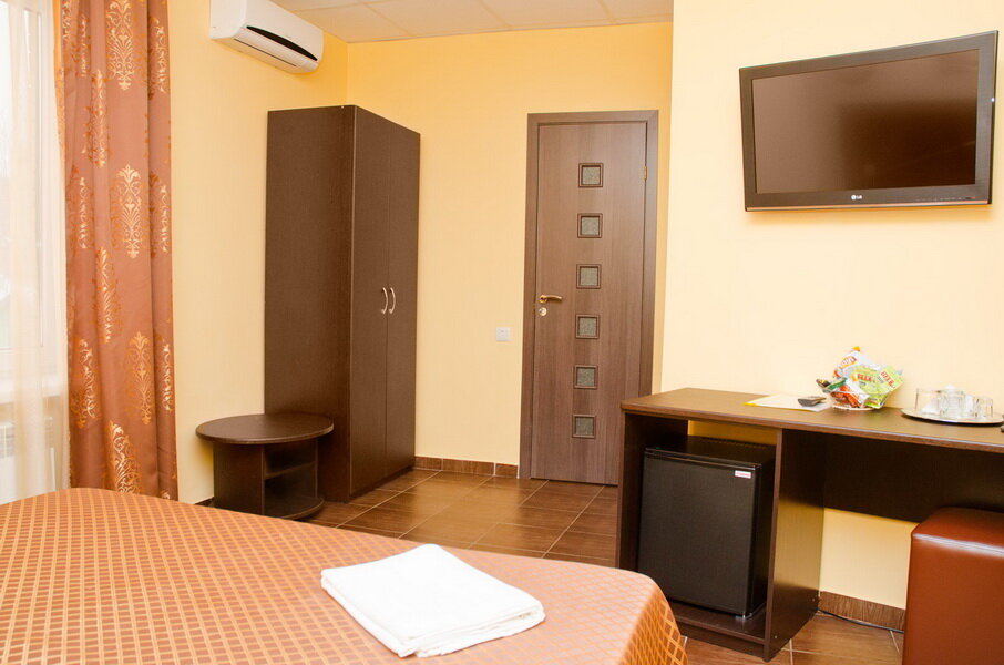 Останавливались по пути из Анапы домой; взели с собой котёнка, потому огромное спасибо отелю за готовность принять и таких гостей!!! Номер чистый, но для нашей семьи (трое детей +родители) был тесноват — но на одну ночь вполне нормально. Рядом есть и МакДональдс, и КФС(и, кажется, и круглосуточный супермаркет рядом) так что локация в этом смысле также очень удачная. Минус одна звезда — потому как так и не смогли запустить в номере кондиционер, и было ОЧЕНЬ ТЕПЛО Наверное, по должной настойчивости можно было бы дорешать до победы — но очень хотелось спать, потому махнули рукой.